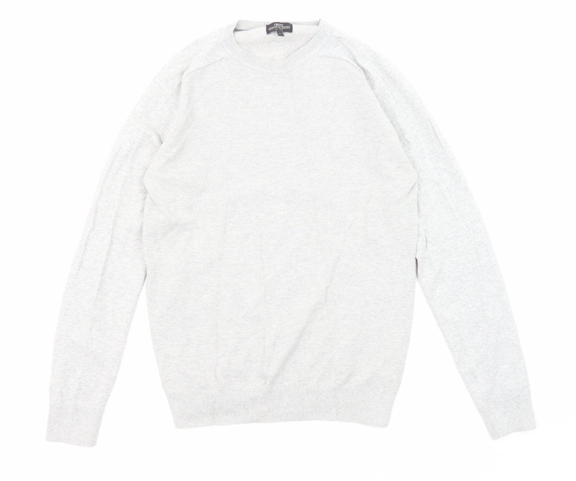 NEXT Mens Grey Round Neck Cotton Pullover Jumper Size S Long Sleeve
