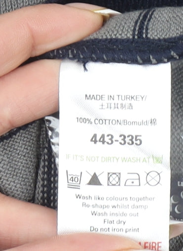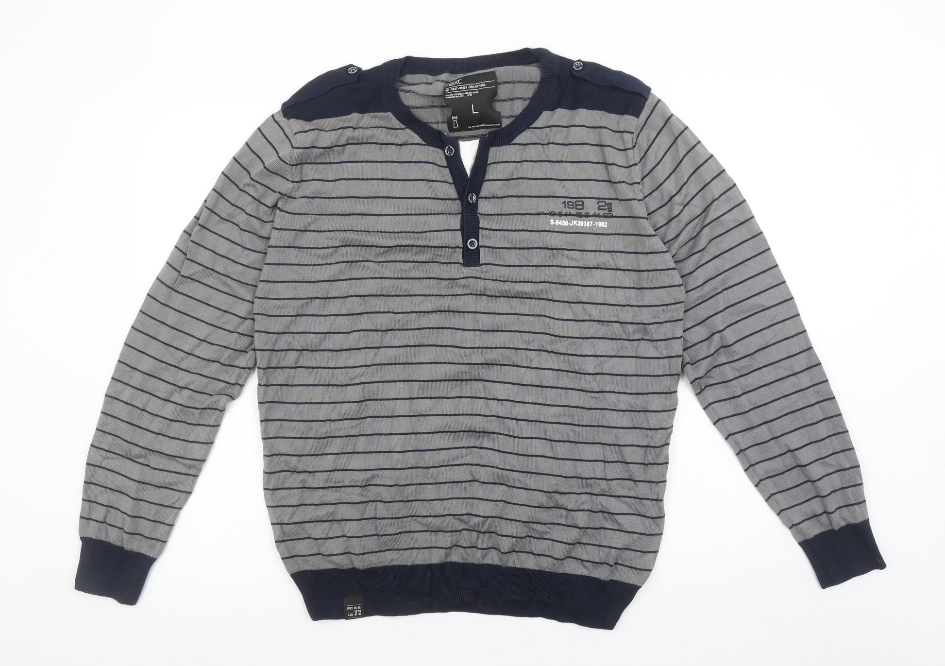 Next Men's Grey Striped Henley Cotton Jumper Size L Long Sleeve