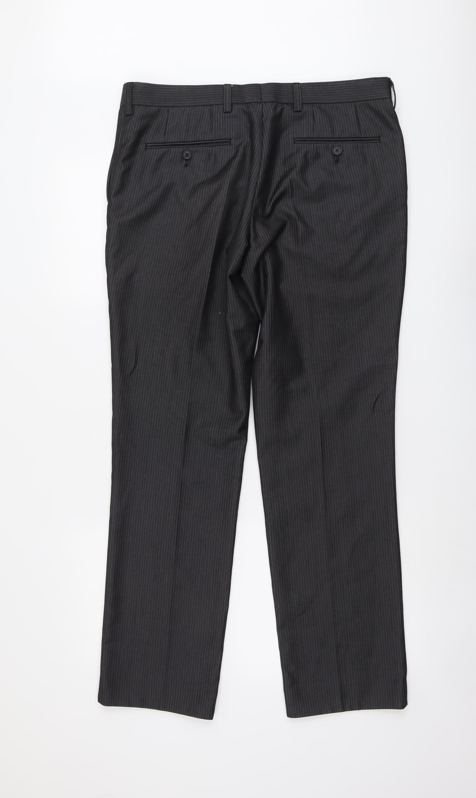 NEXT Mens Grey Striped Polyester Dress Pants Trousers Size 34 in L31 in Regular Button