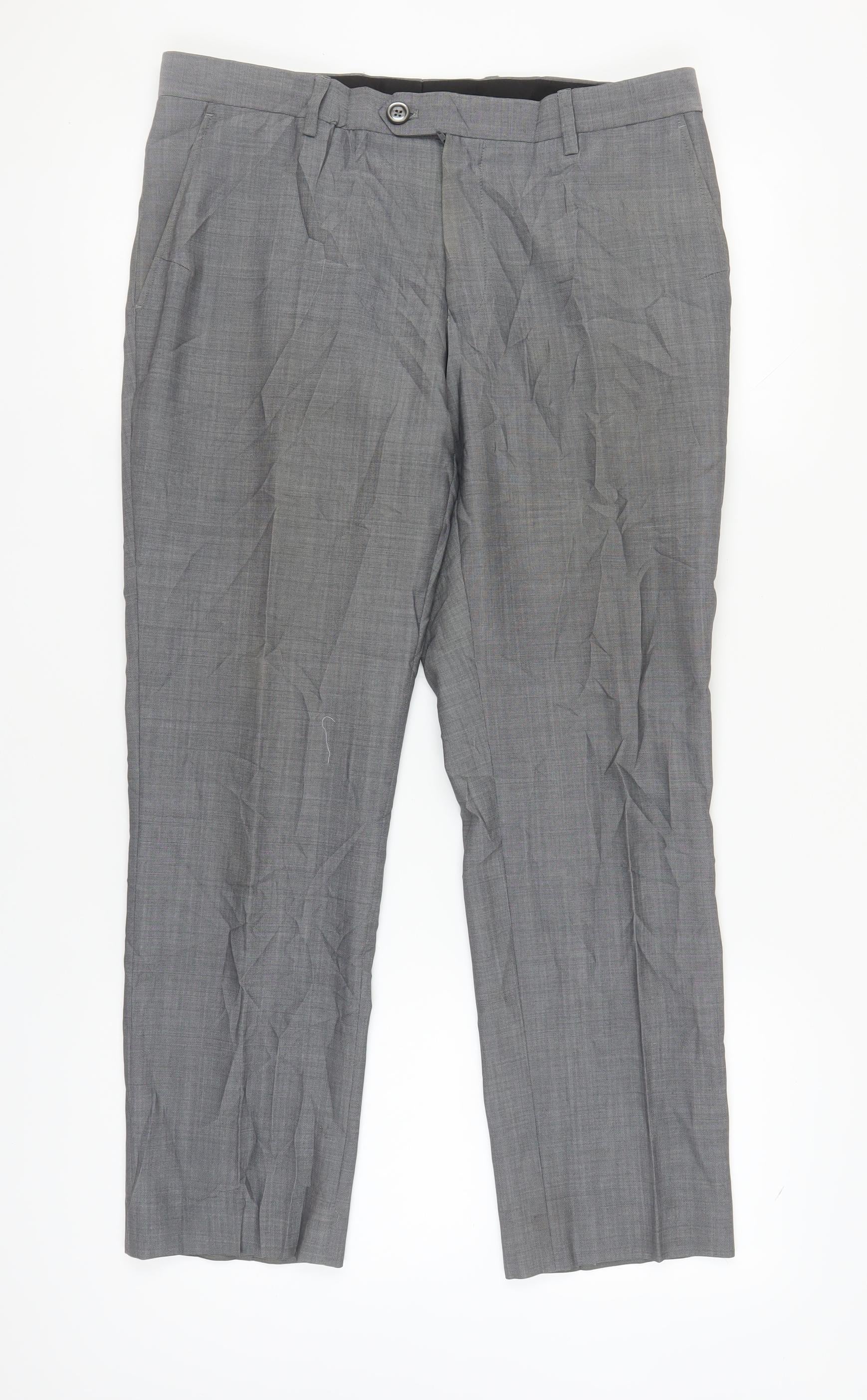 Next Men's Grey Trousers 34S Wool Blend Workwear