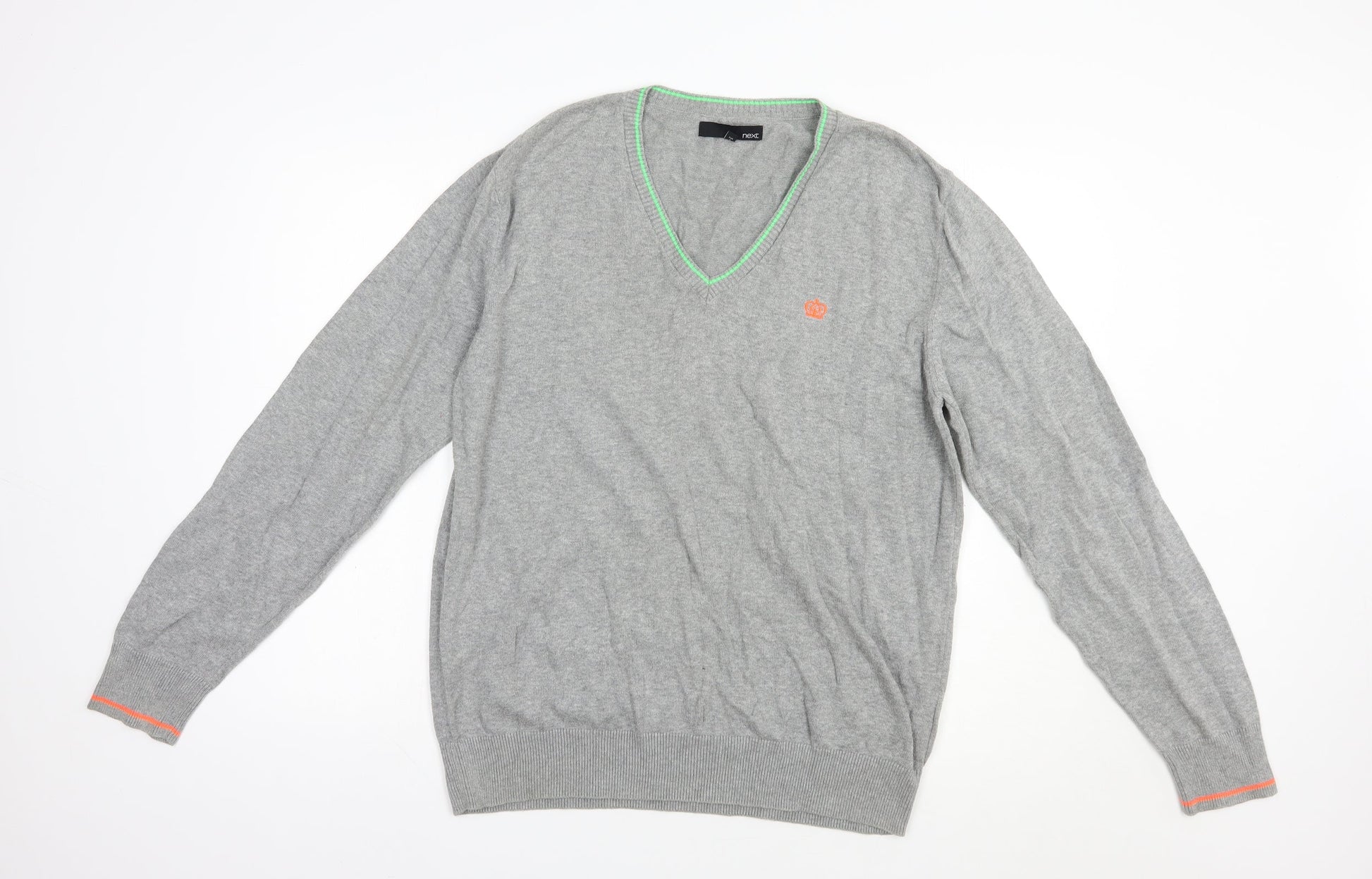 NEXT Mens Grey V-Neck Cotton Pullover Jumper Size L