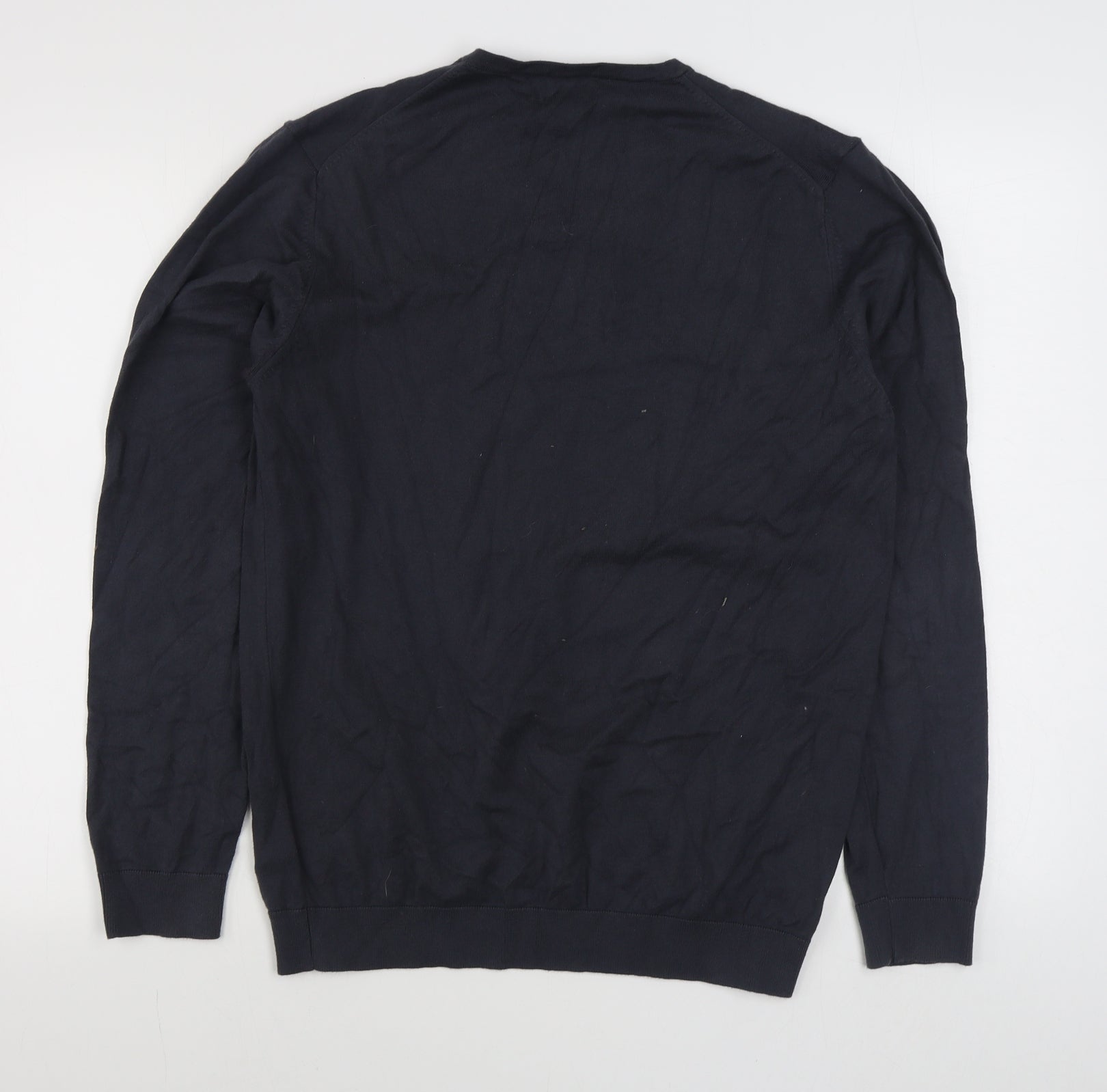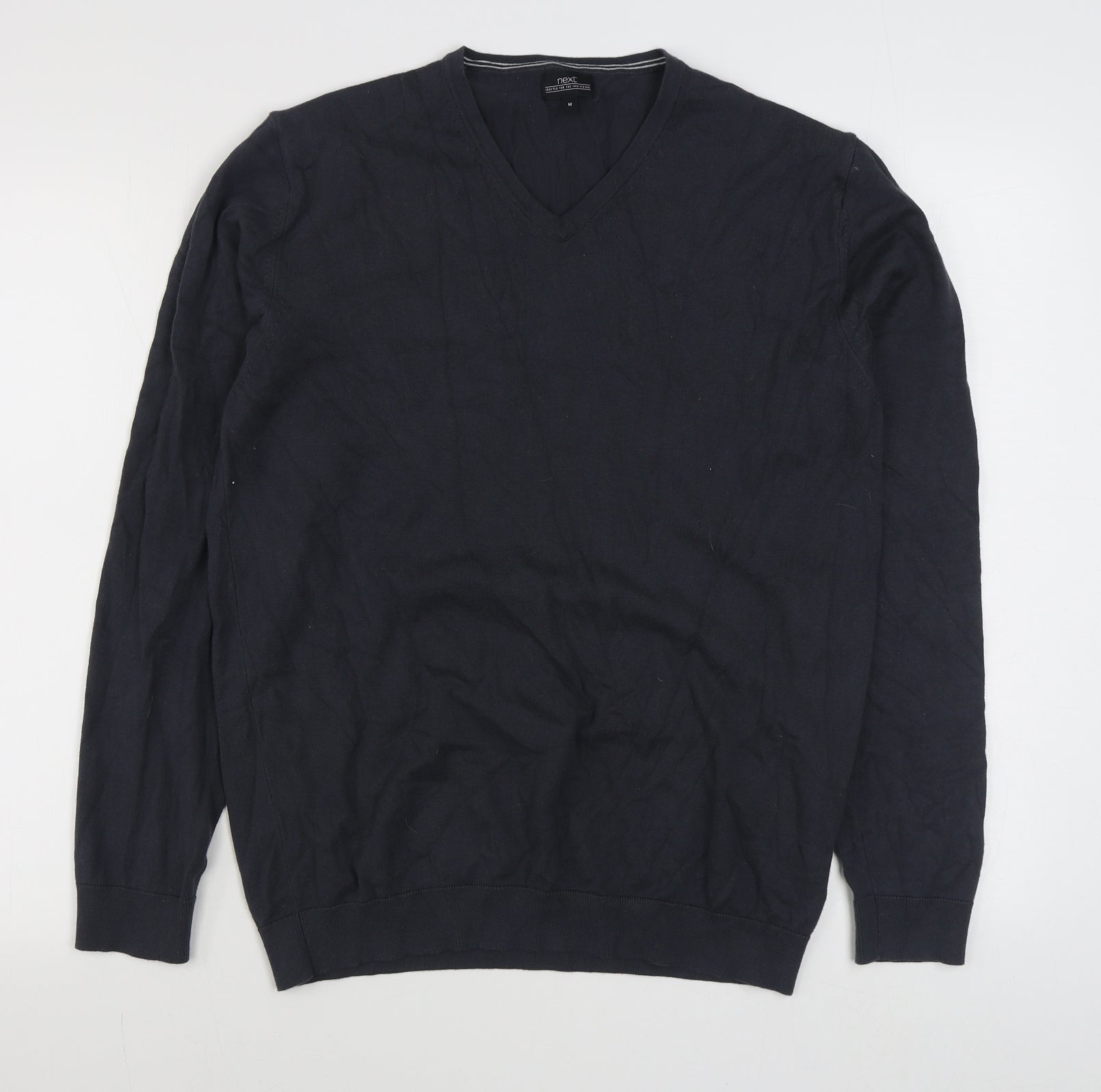 NEXT Mens Grey V-Neck Cotton Pullover Jumper Size M