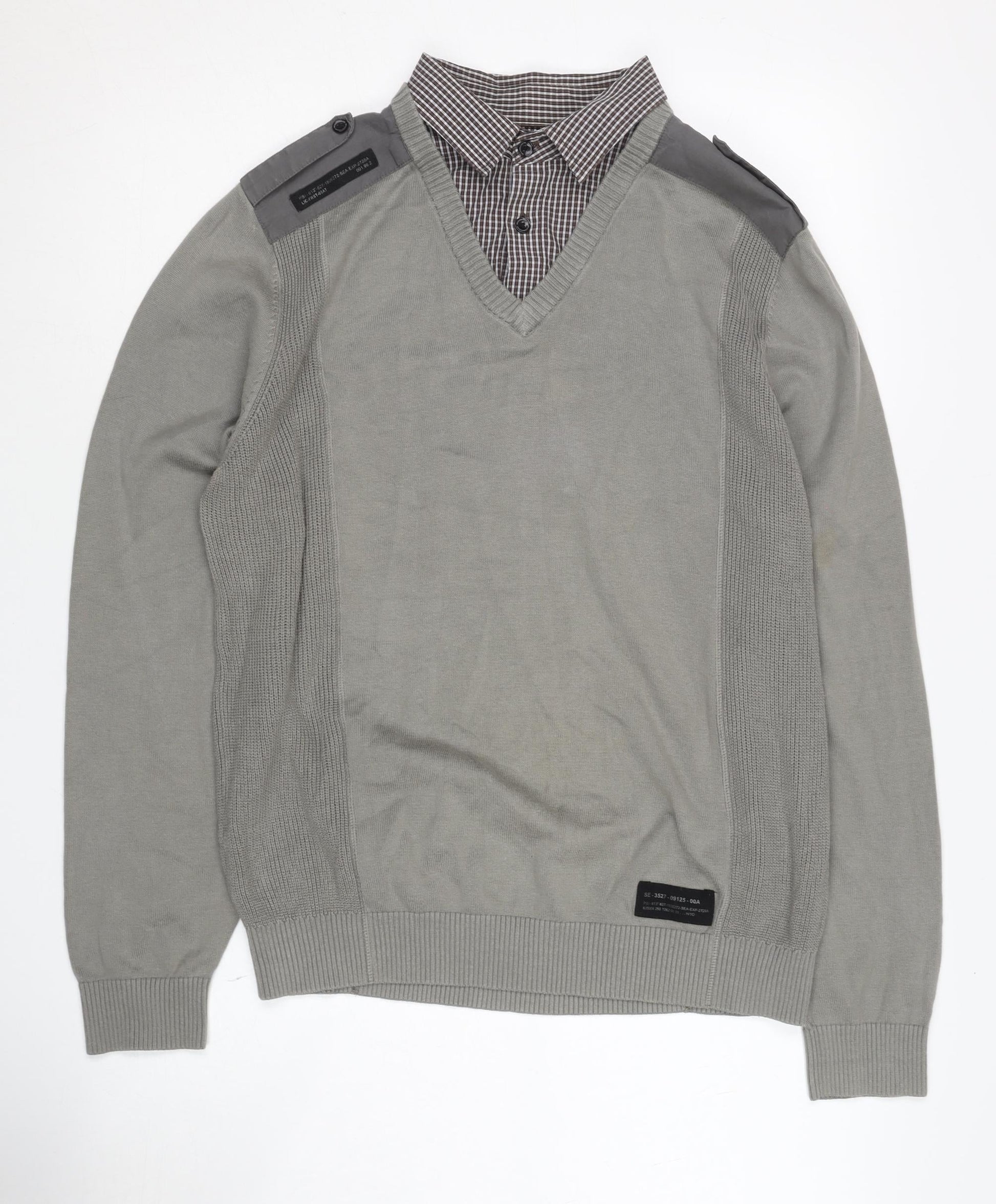 Next Men's Grey V-Neck Jumper, Size M, Button Accent