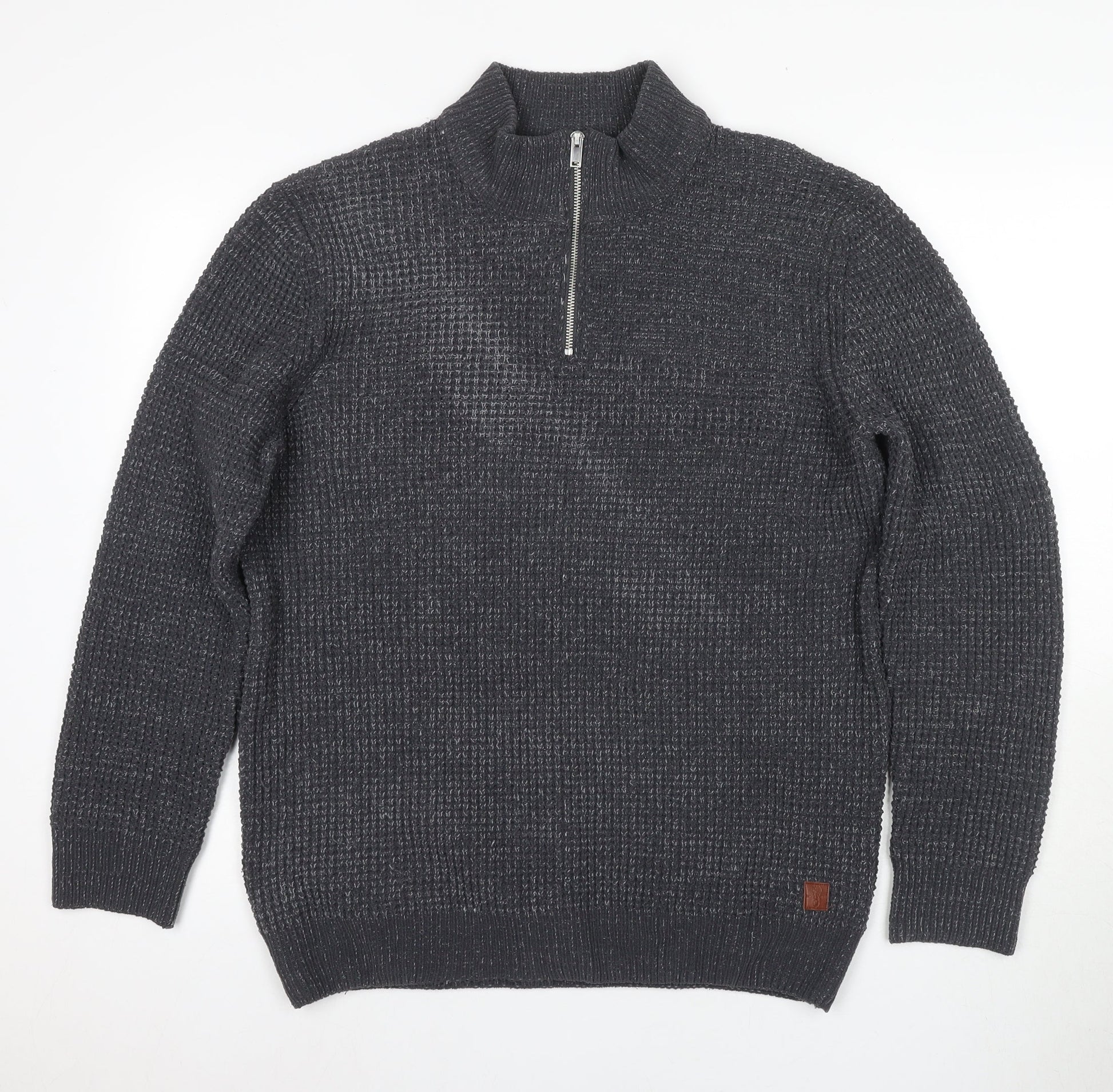 Next Men's Grey Waffle-Knit Full Zip Jumper, Size L