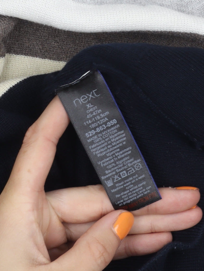 Next Men's Grey XL Pullover Jumper, High Neck, Striped