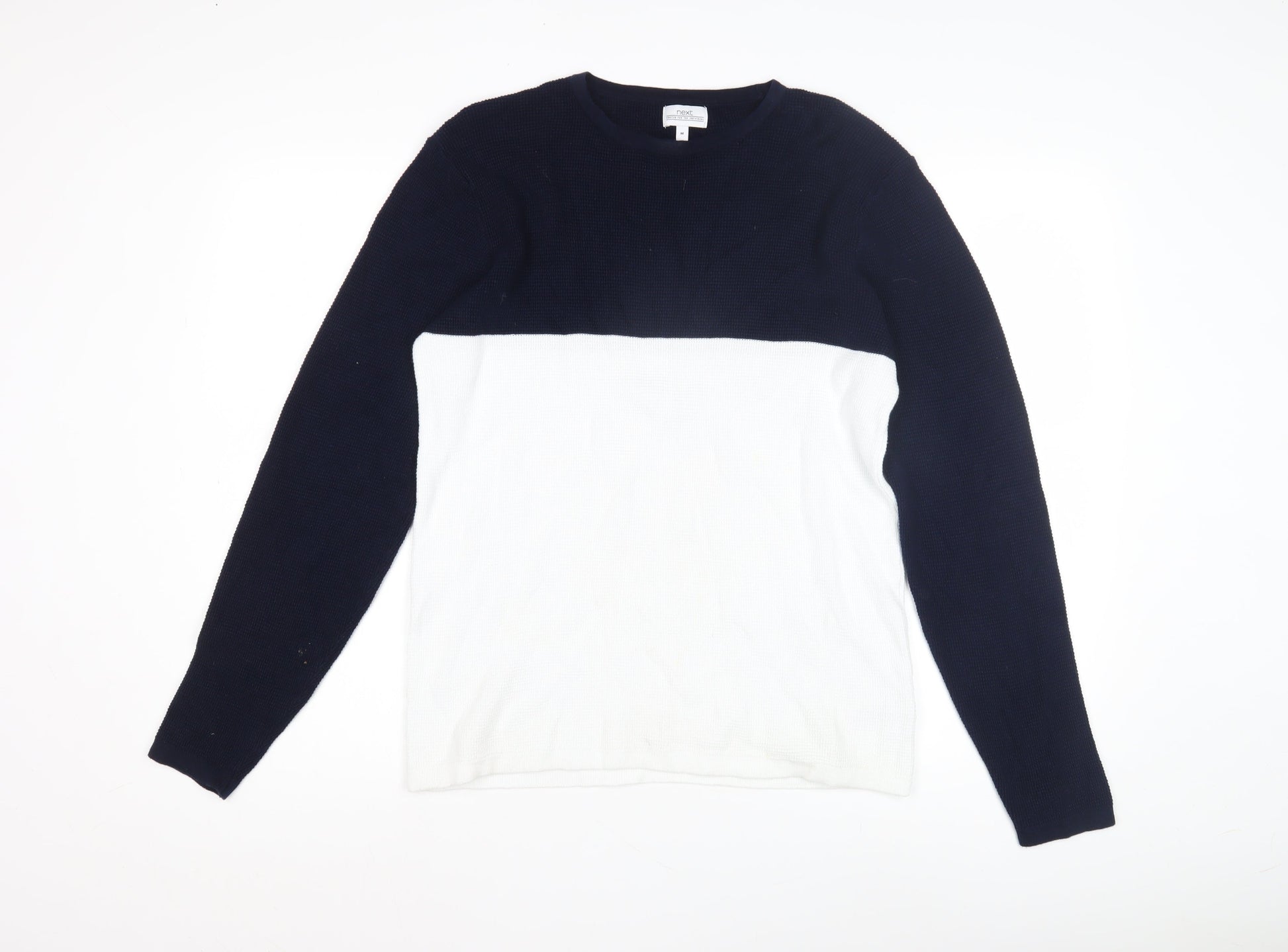 Next Men's M Blue White Waffle-Knit Pullover Jumper