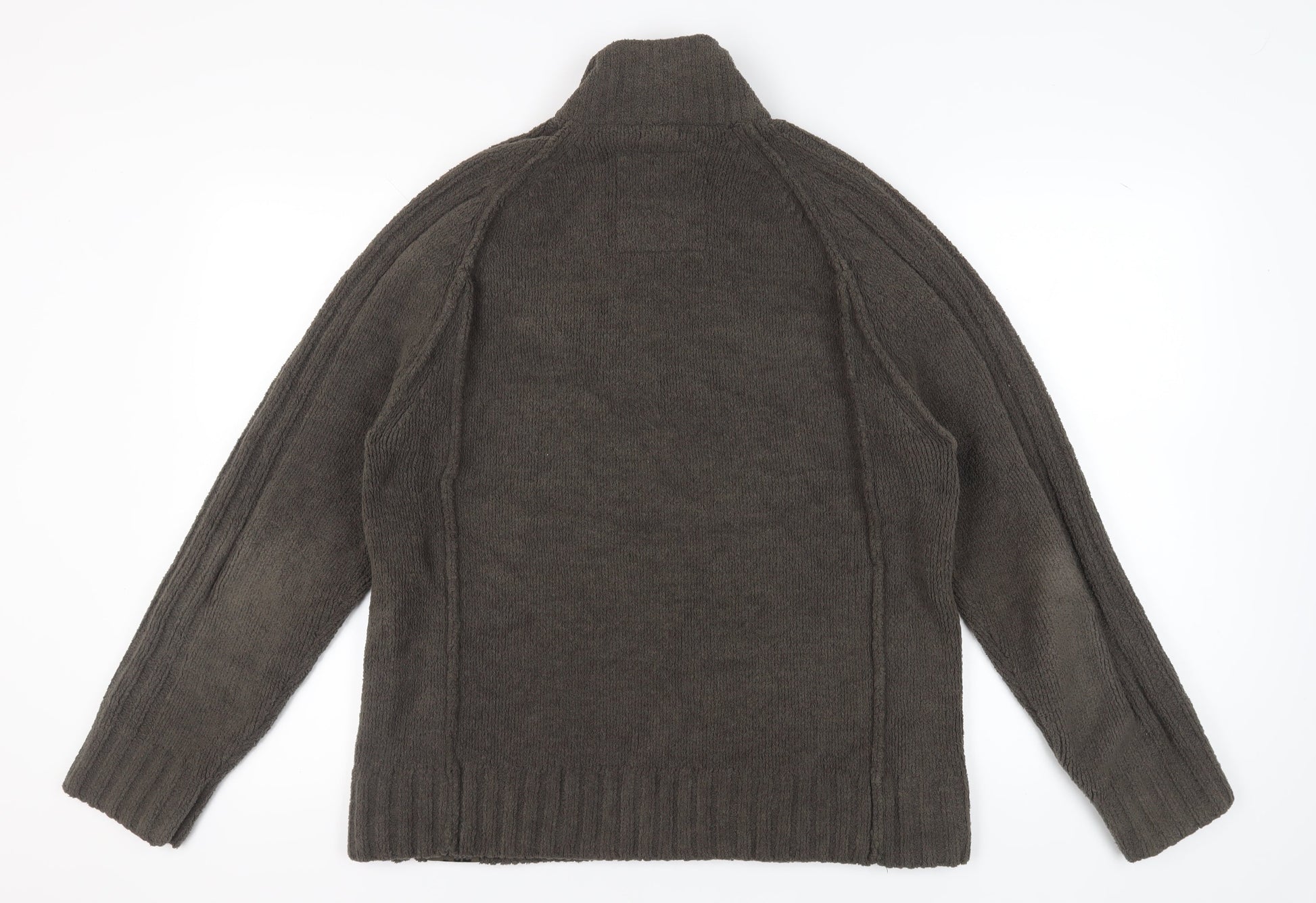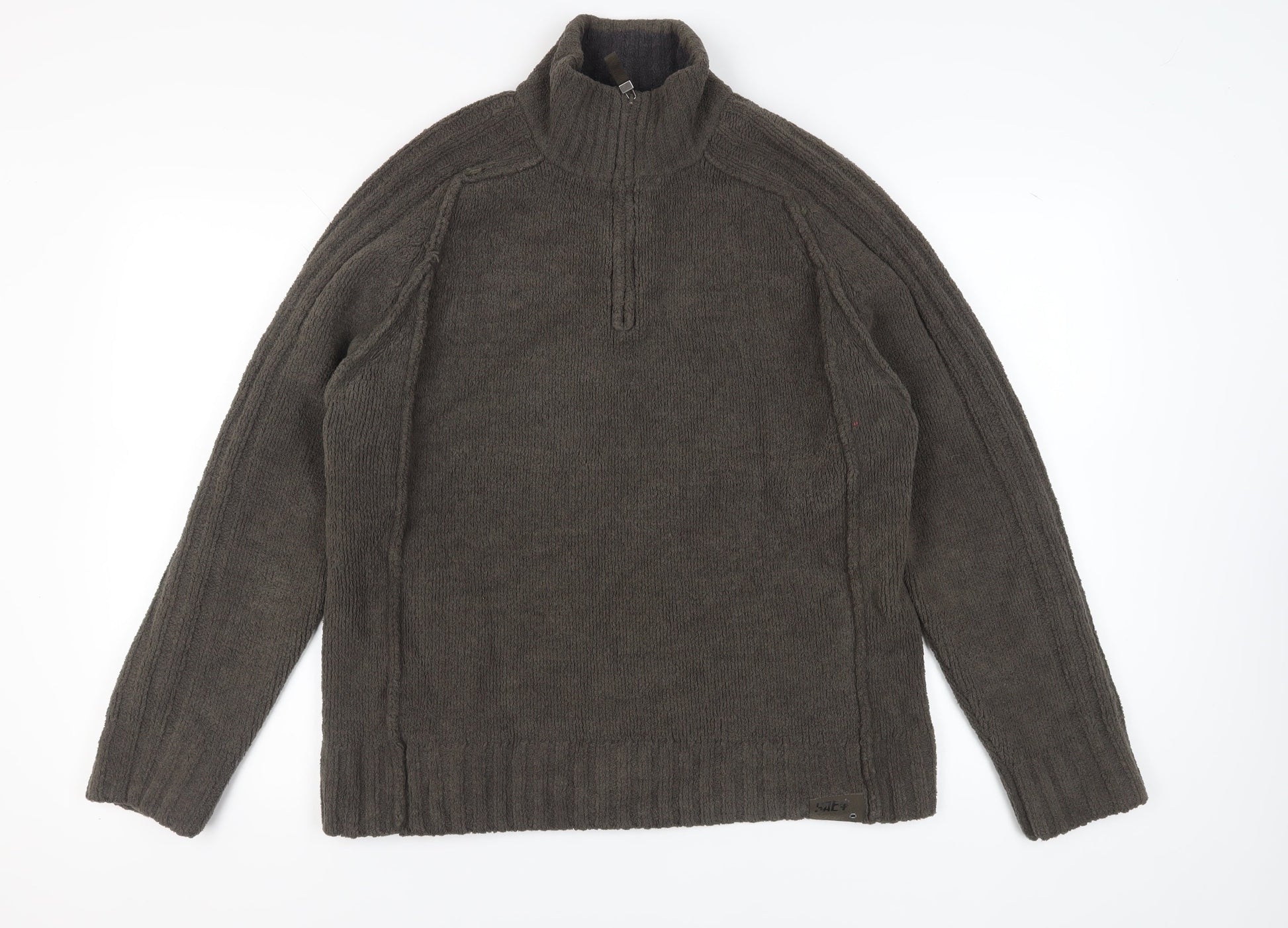 Next Men's M Brown Full Zip Jumper, High Neck, 1/4 Zip