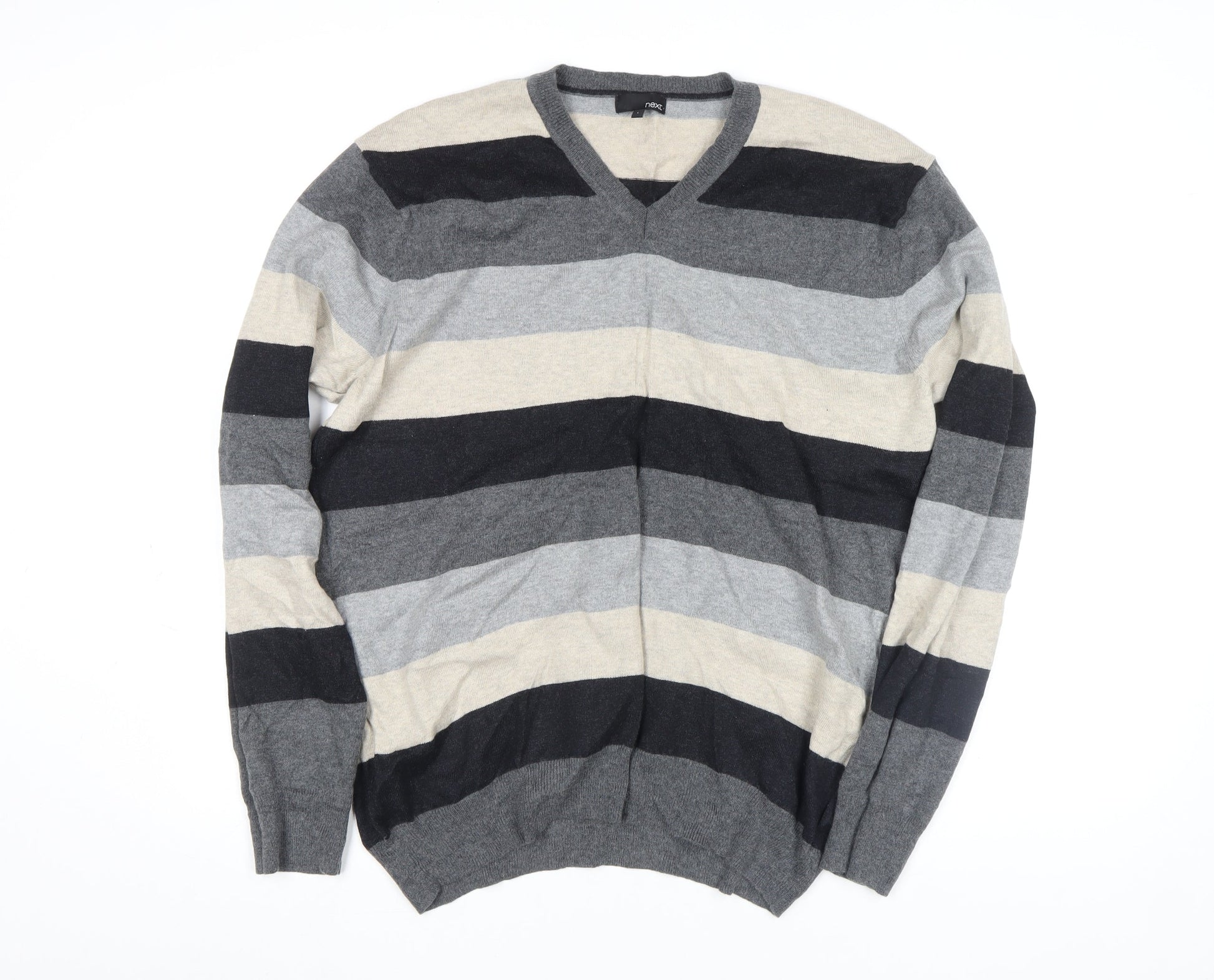Next Men's Multicoloured L V-Neck Striped Cotton Wool Jumper
