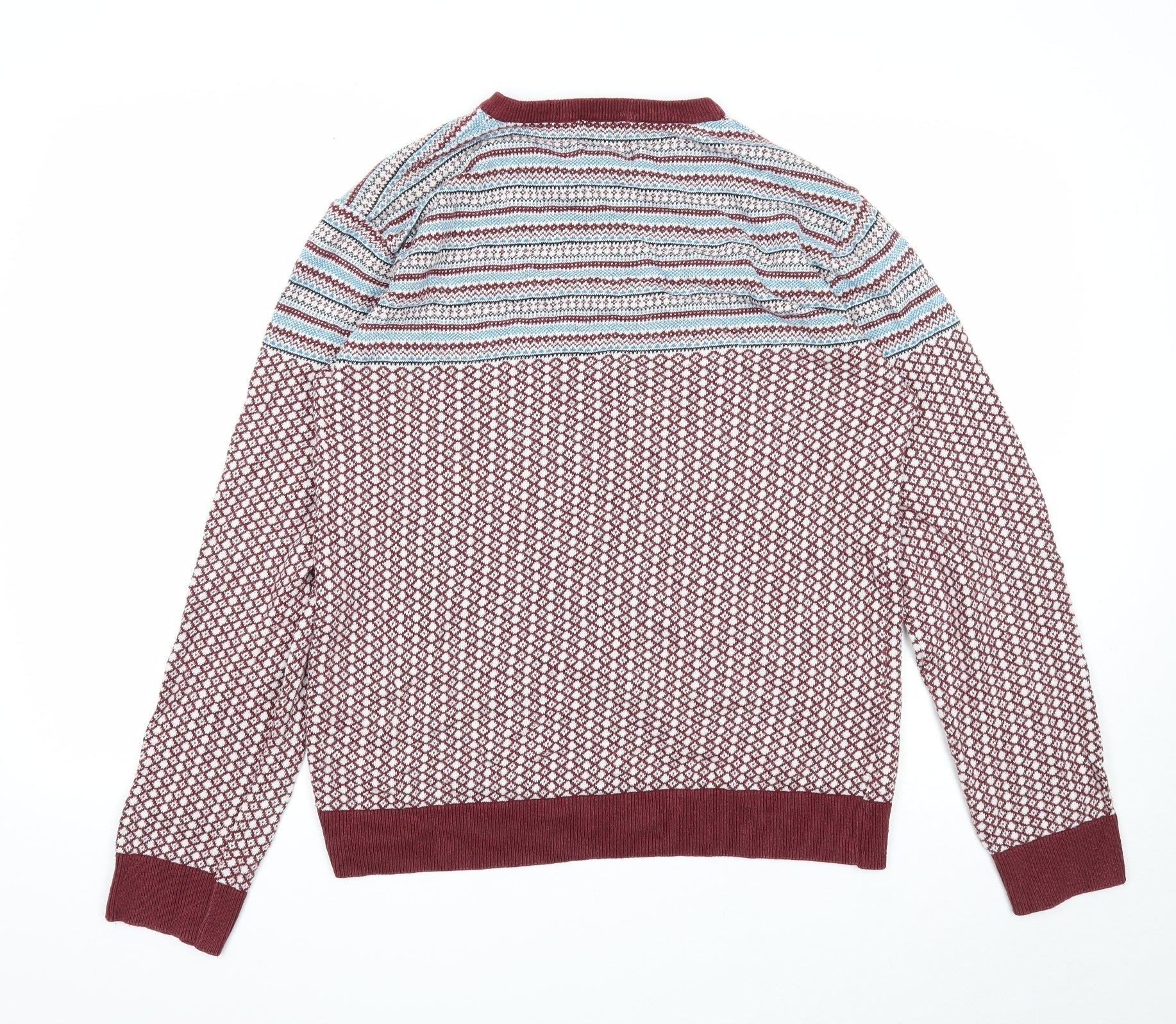 NEXT Mens Multicoloured Round Neck Geometric Cotton Pullover Jumper Size L Long Sleeve