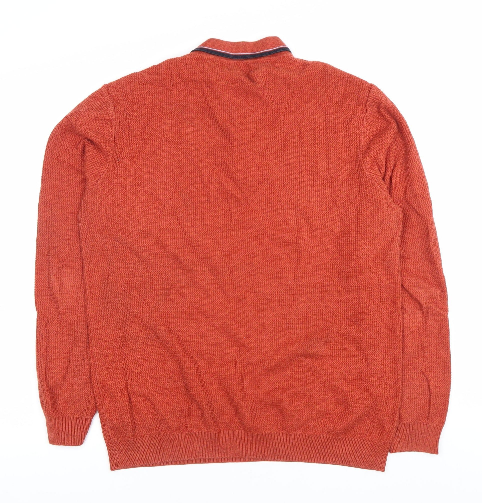Next Mens Orange L Collared Henley Jumper Long Sleeve Cotton Knit
