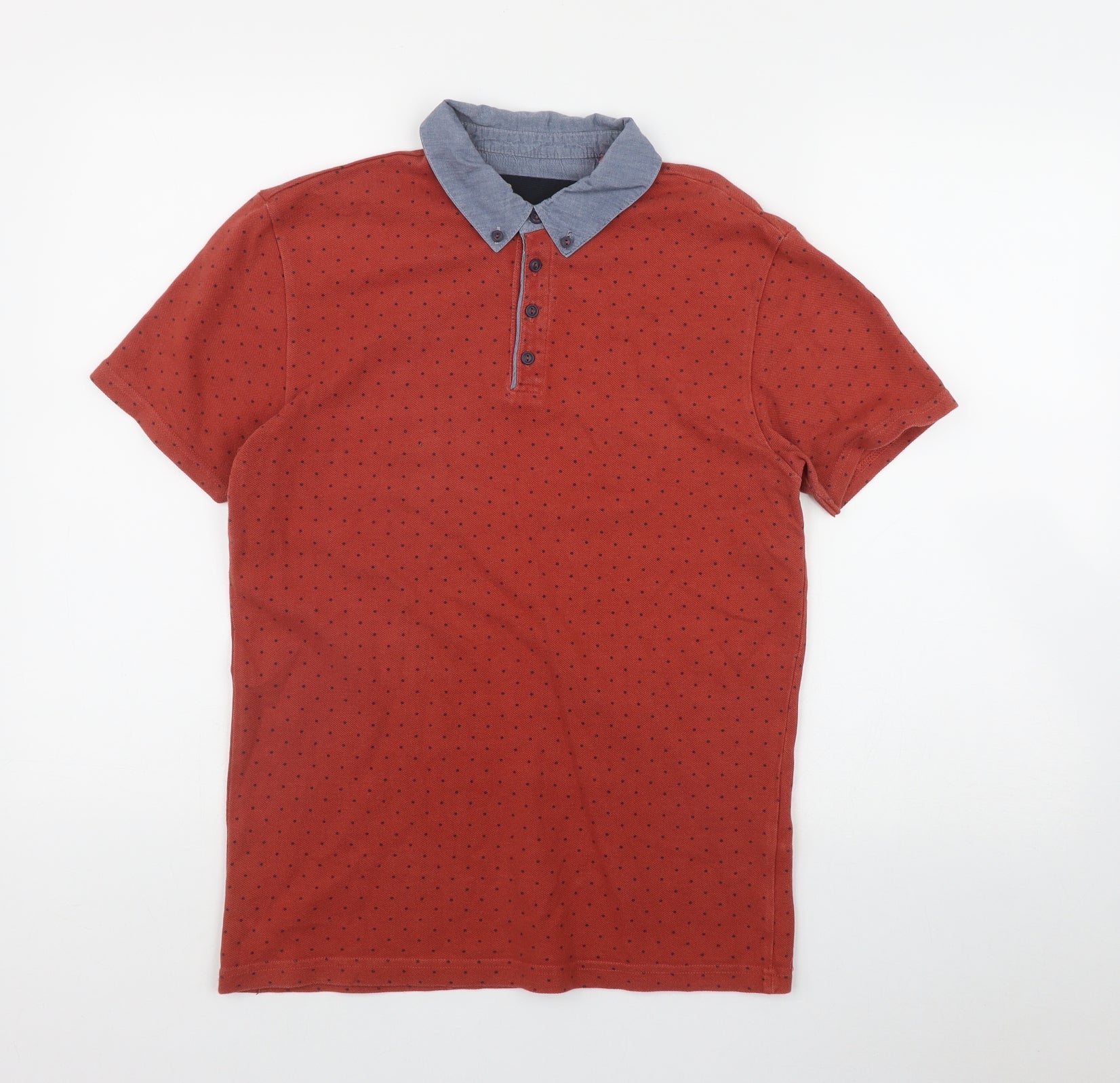 NEXT Mens Orange Polka Dot Cotton Polo Size S Collared Button