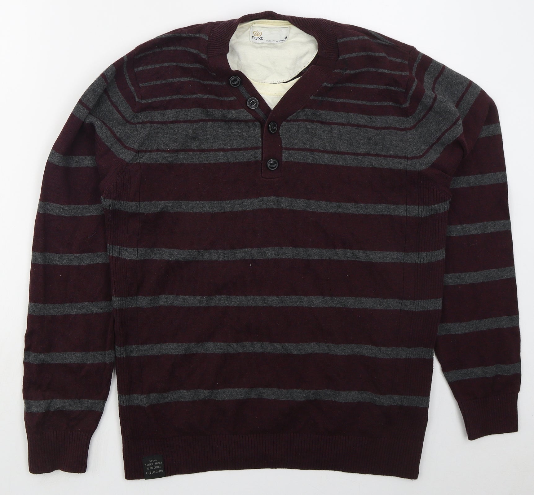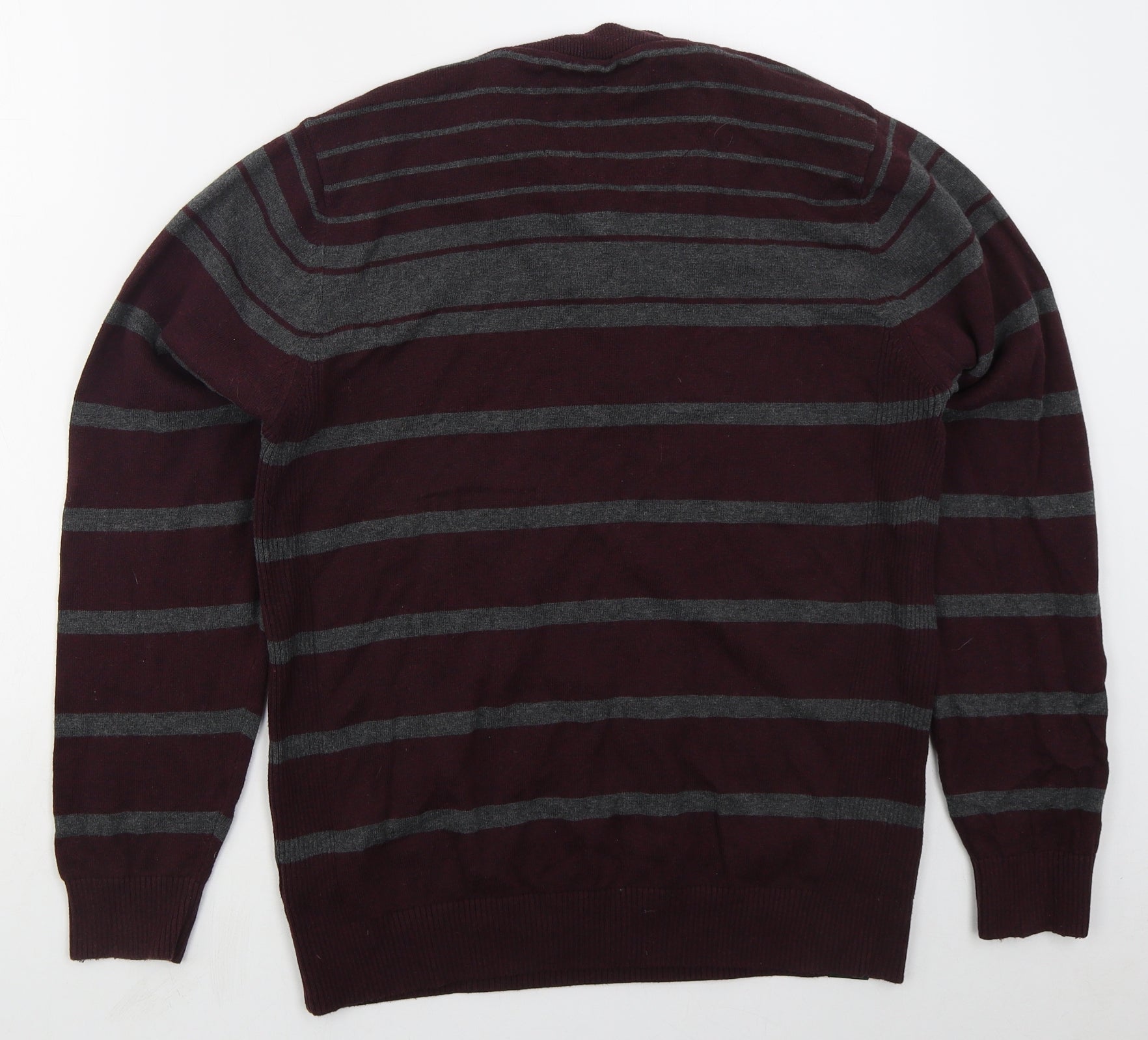 NEXT Mens Red V-Neck Striped Cotton Pullover Jumper Size M - Burgundy
