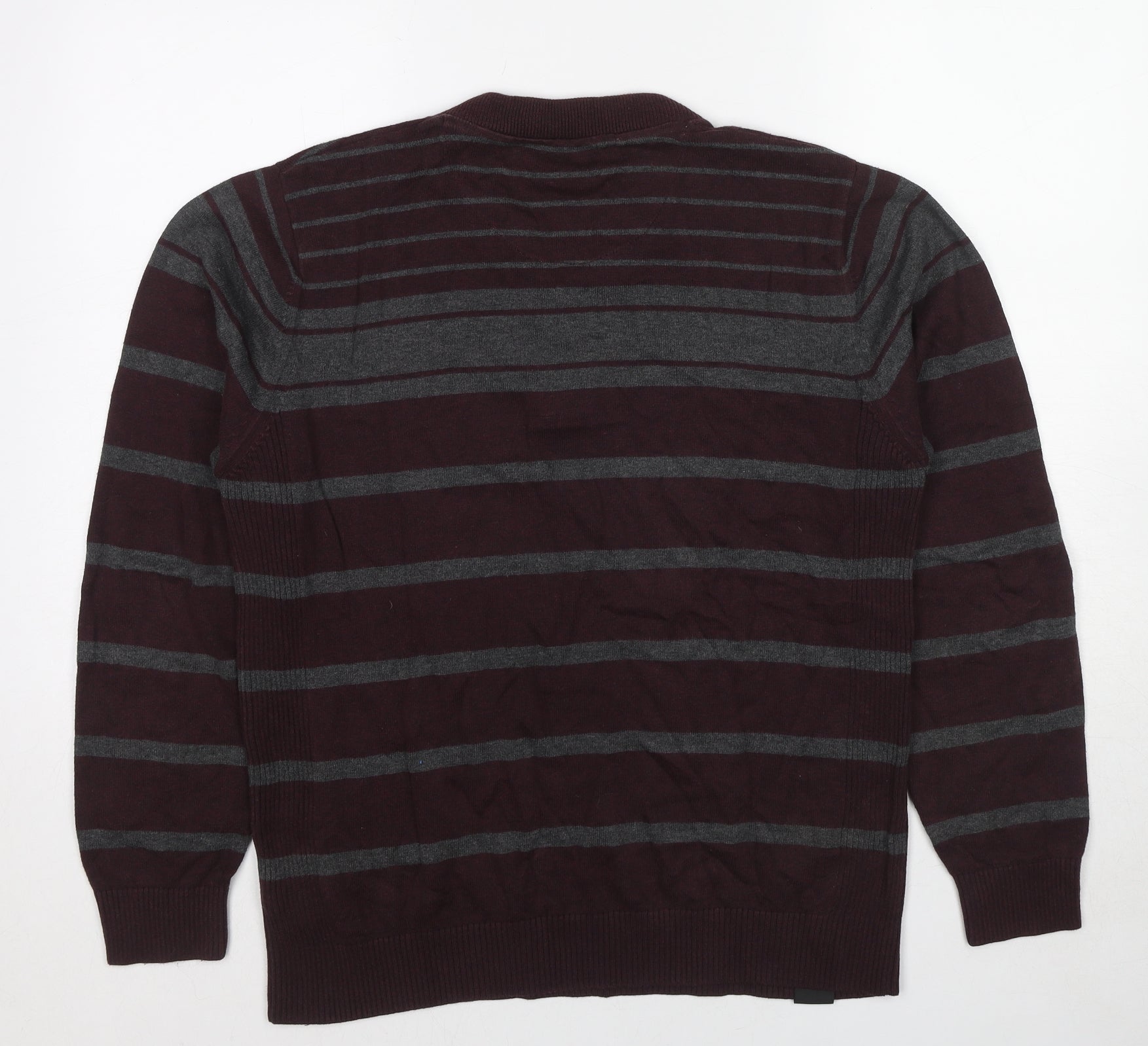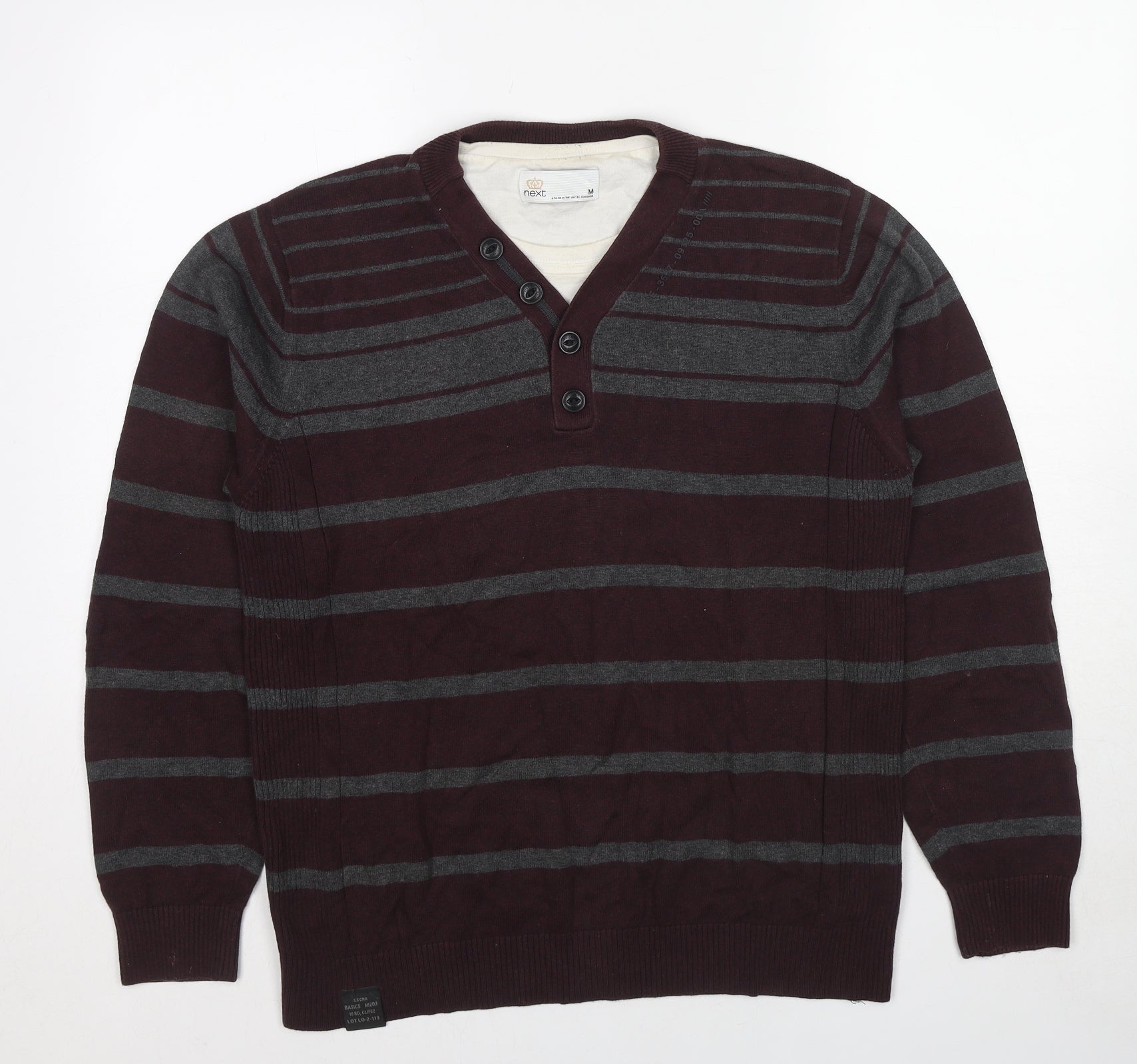 NEXT Mens Red V-Neck Striped Polyester Pullover Jumper Size M Long Sleeve