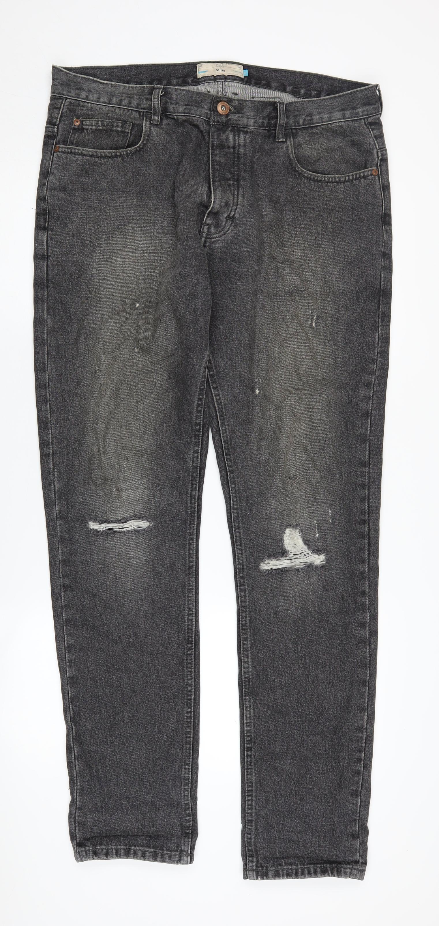 Next Men's Slim Black Jeans, L Size, Distressed Style