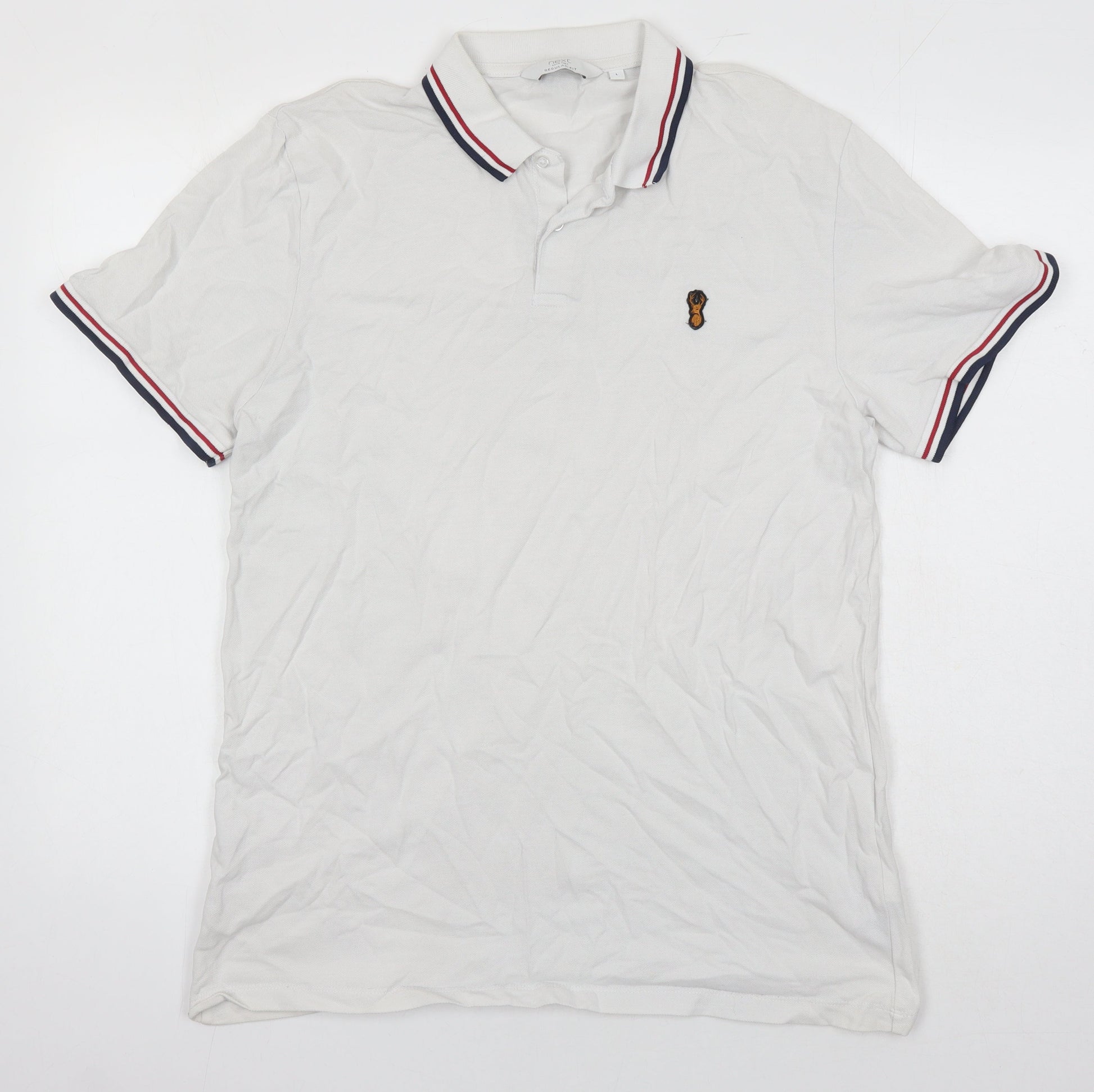 NEXT Mens White Cotton Polo Size L Collared