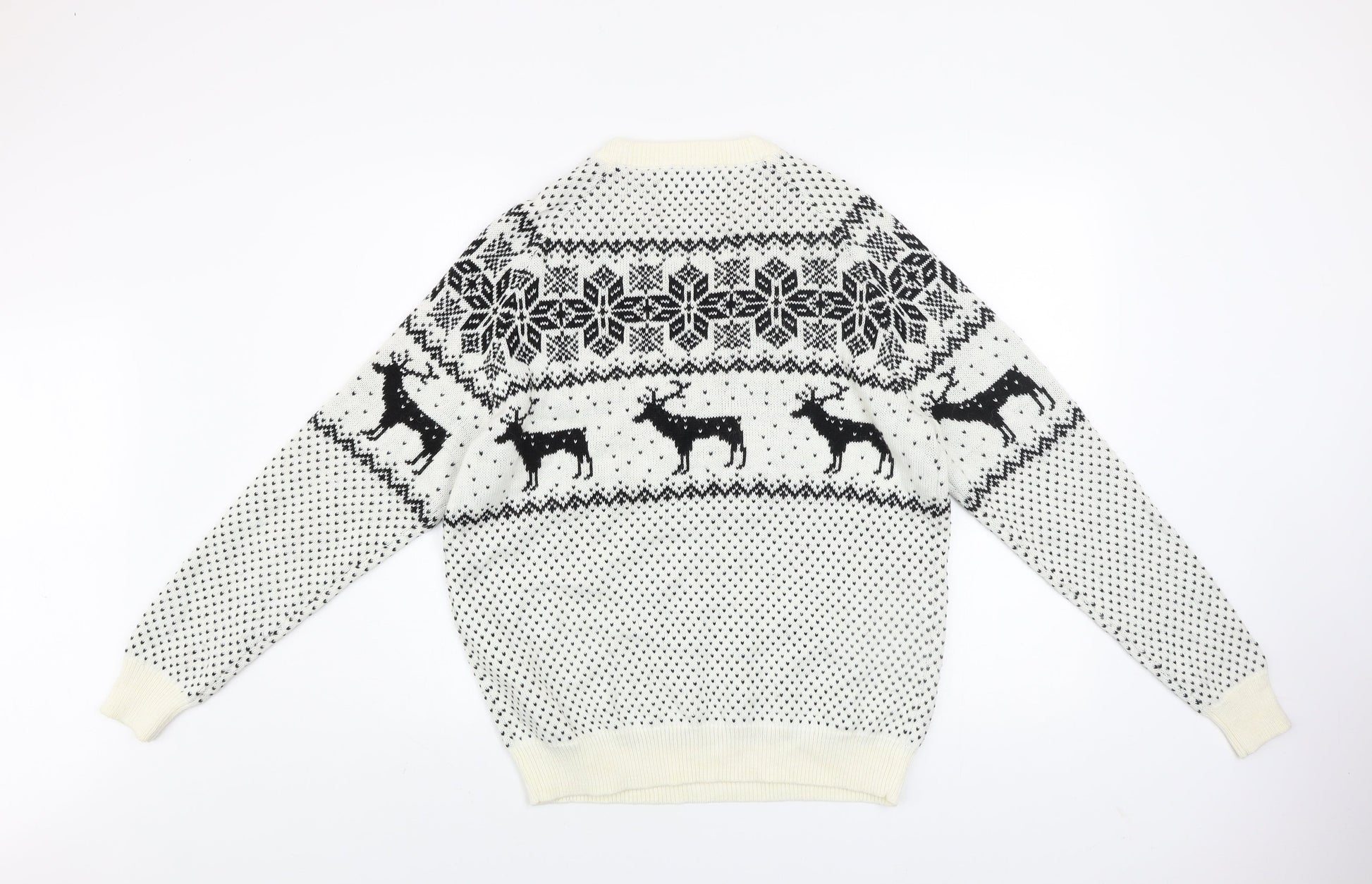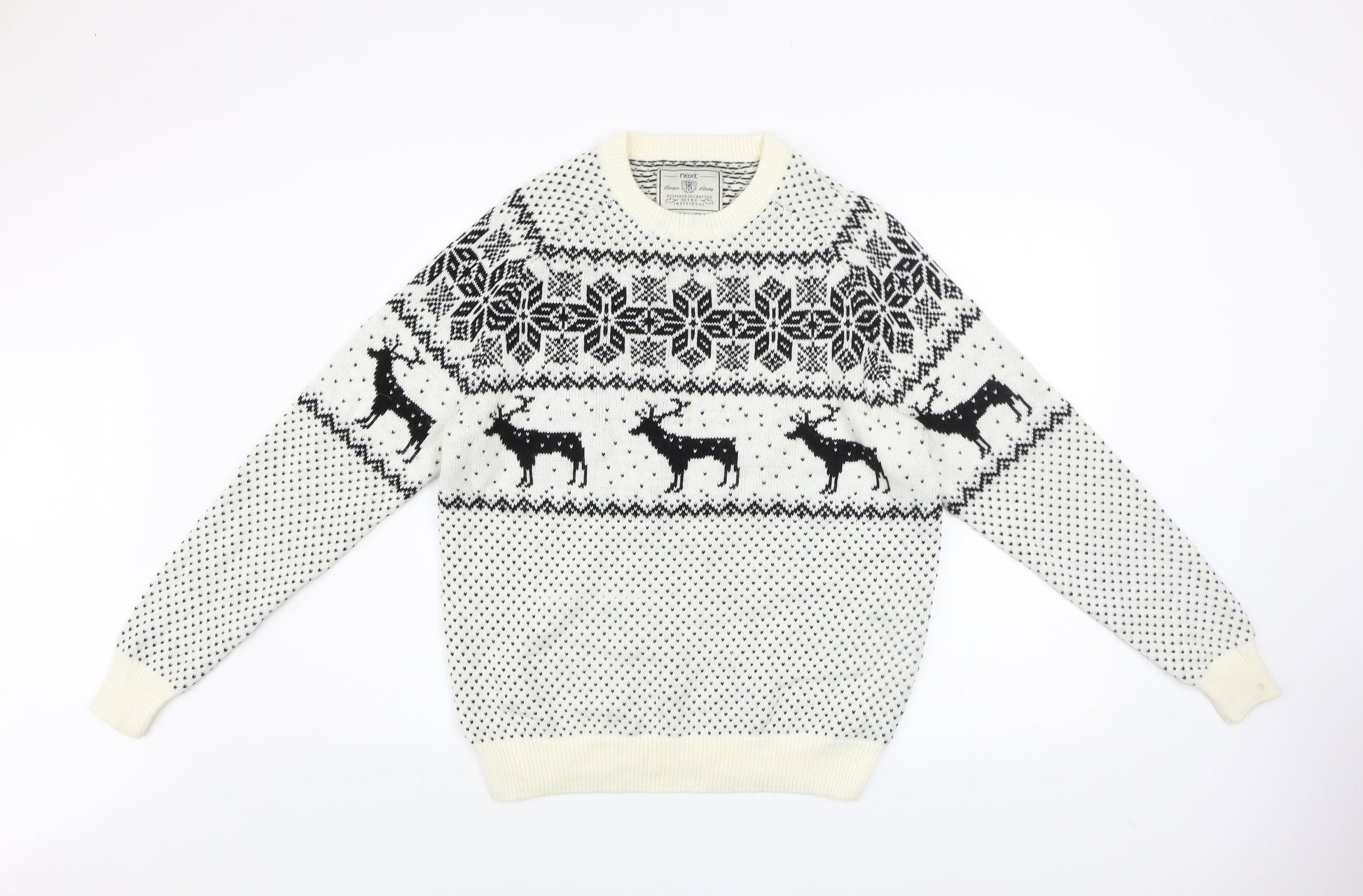 Next Men's White Fair Isle Reindeer Jumper L Winter Knitwear