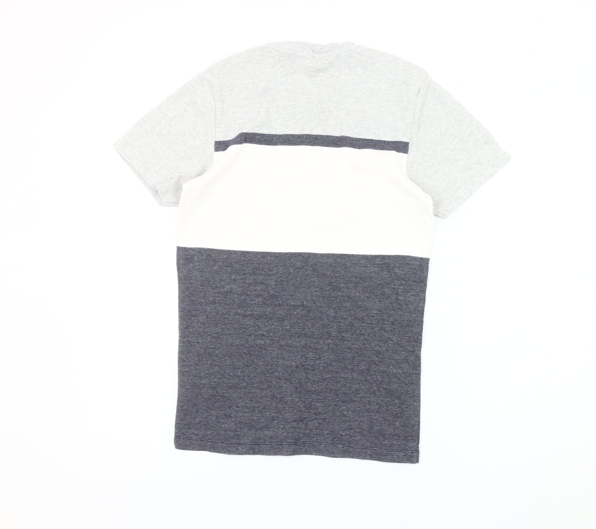 Next Men's XS Grey White Blue Colourblock Cotton T-Shirt
