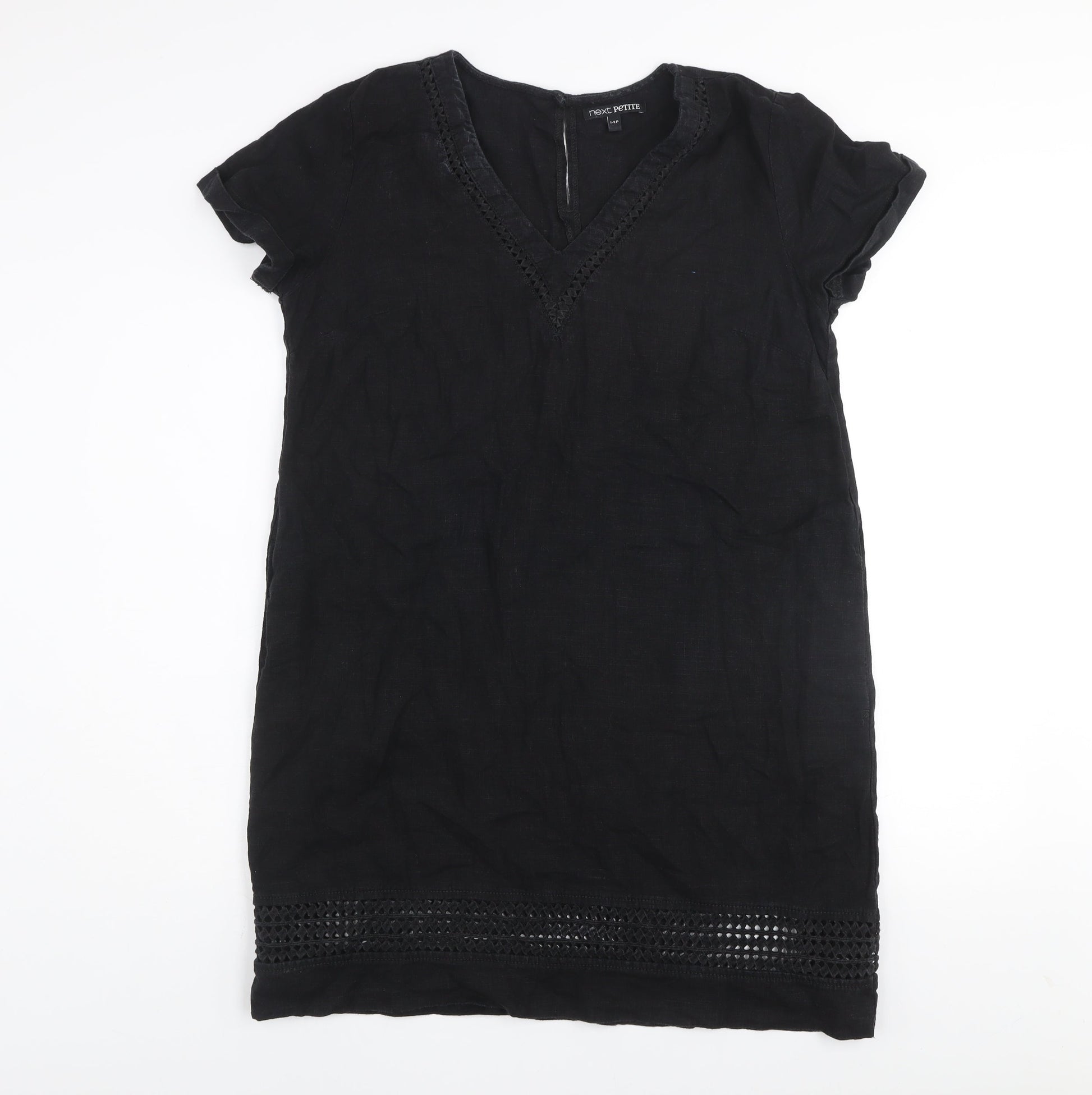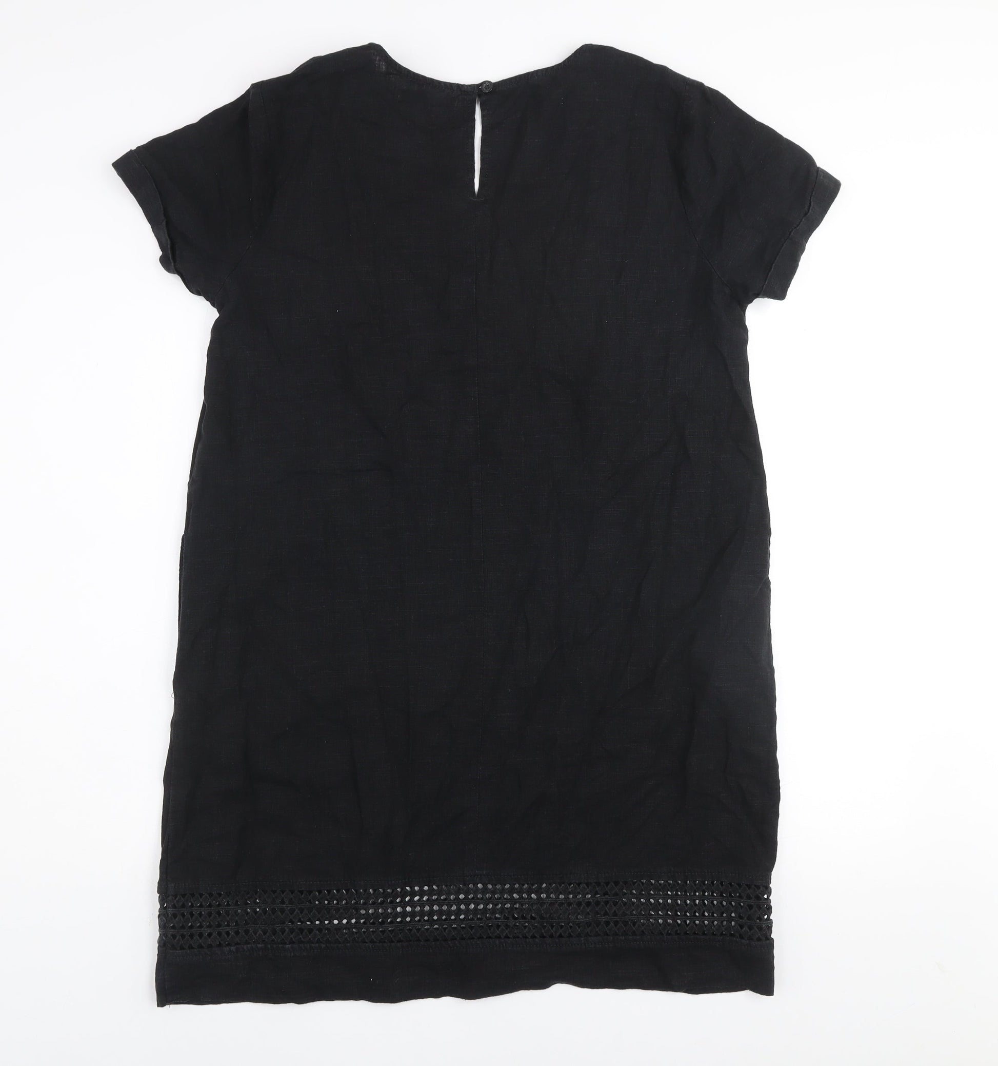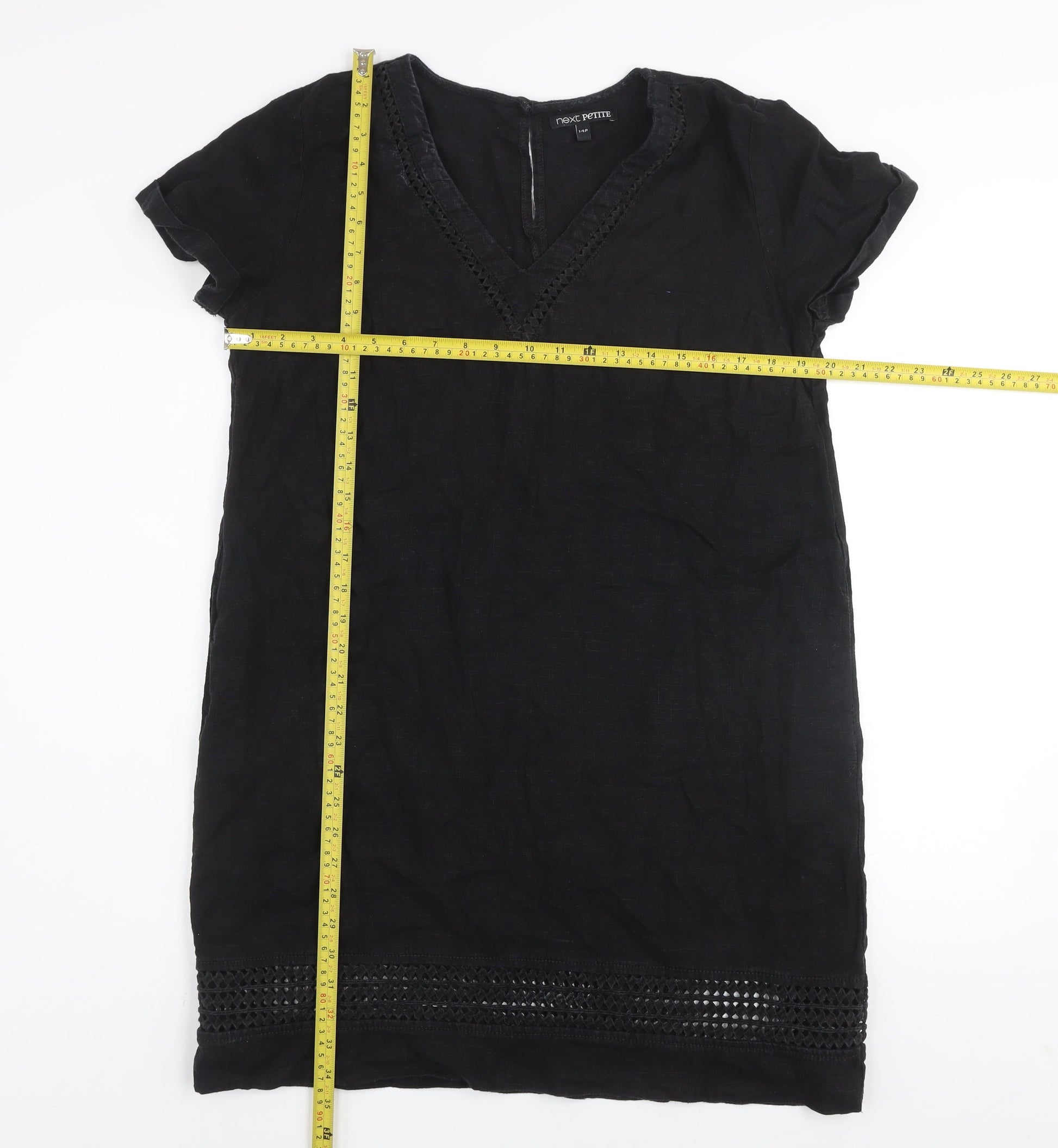 Next Petite Black Linen Shift Dress Women Size 14P Short Sleeve V-Neck