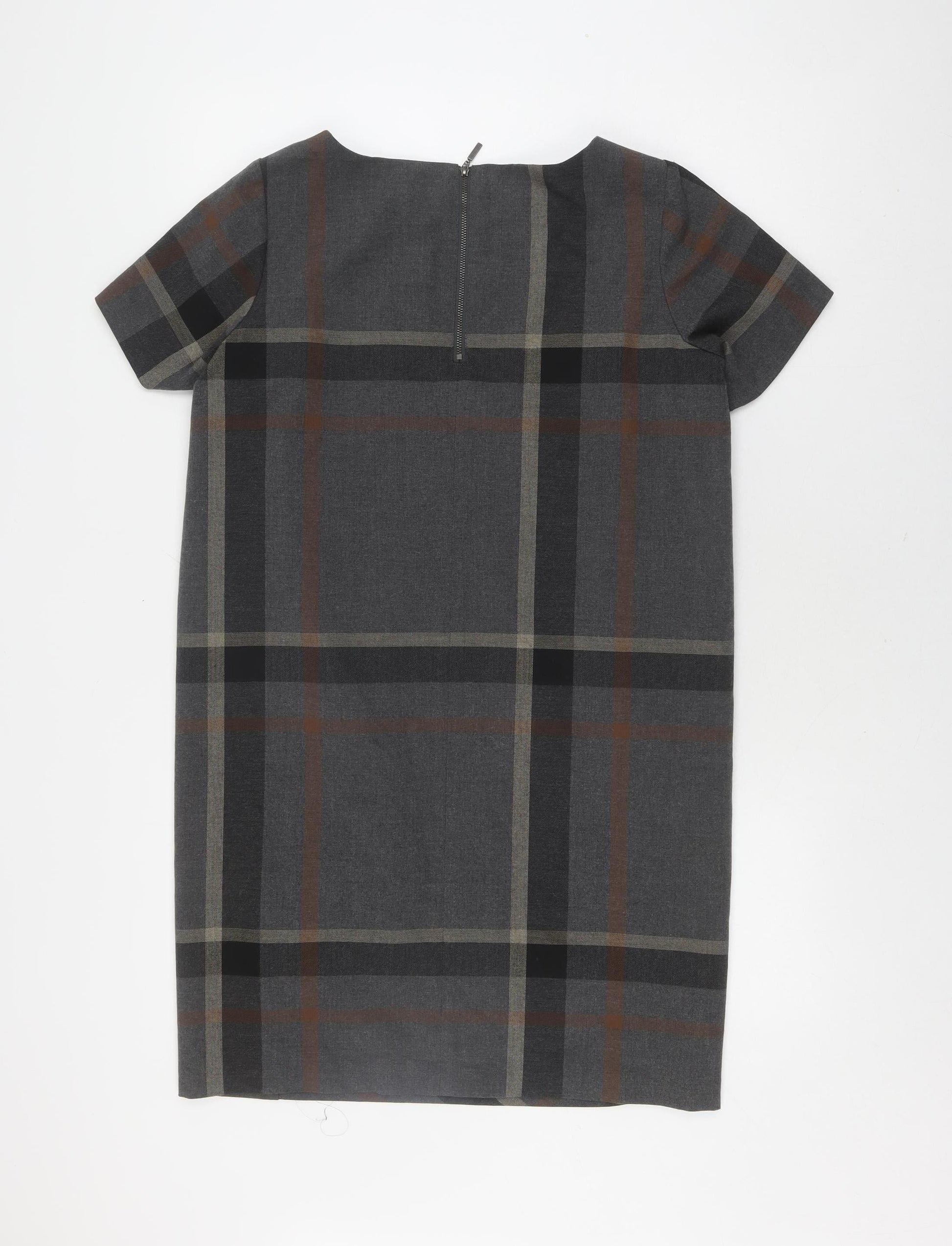 Next Petite Grey Plaid Shift Dress Size 12 Women