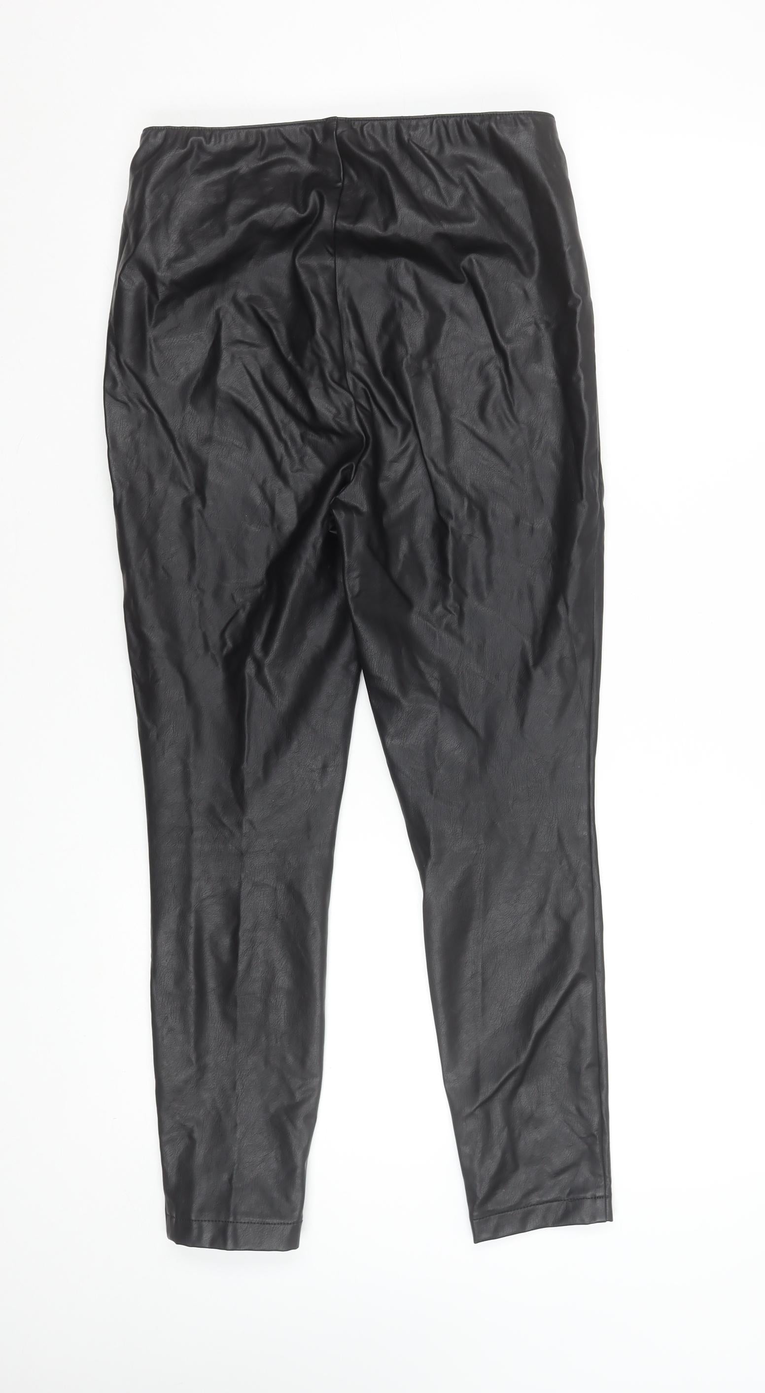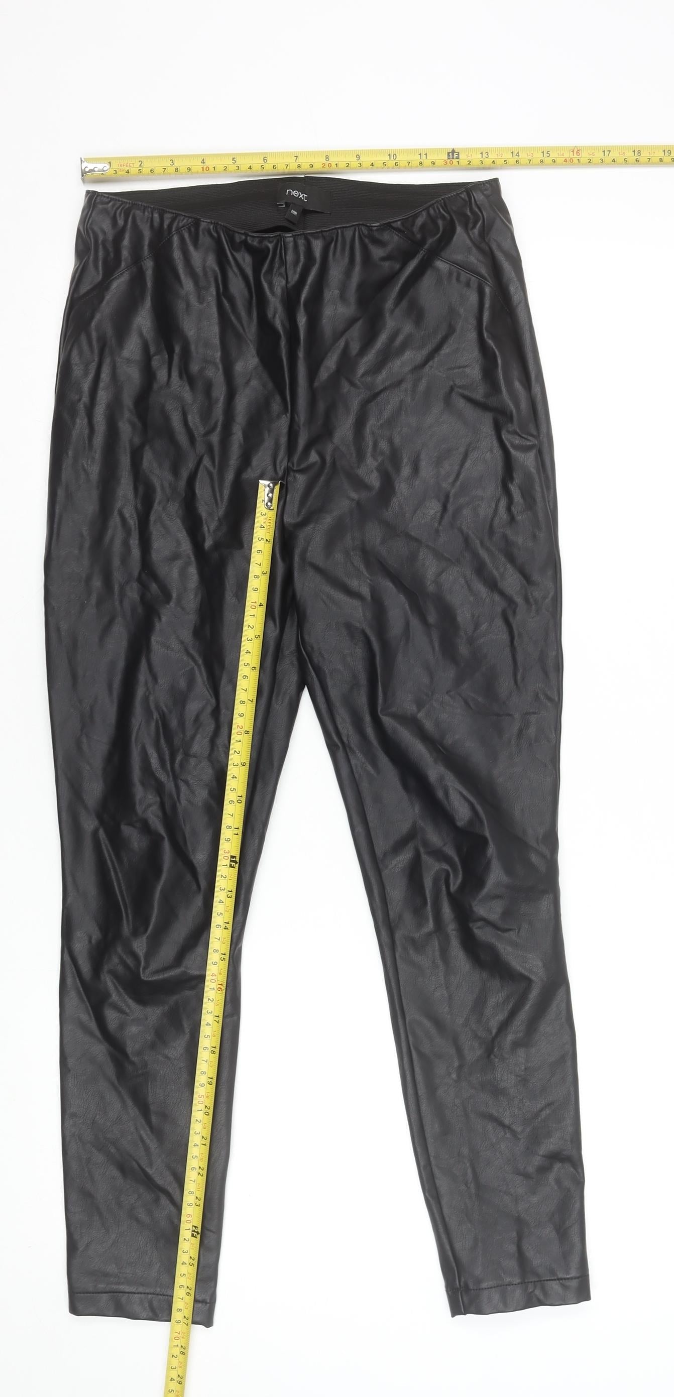Next Women Black Faux Leather Leggings Size 10 Regular Stretchy Pull-On
