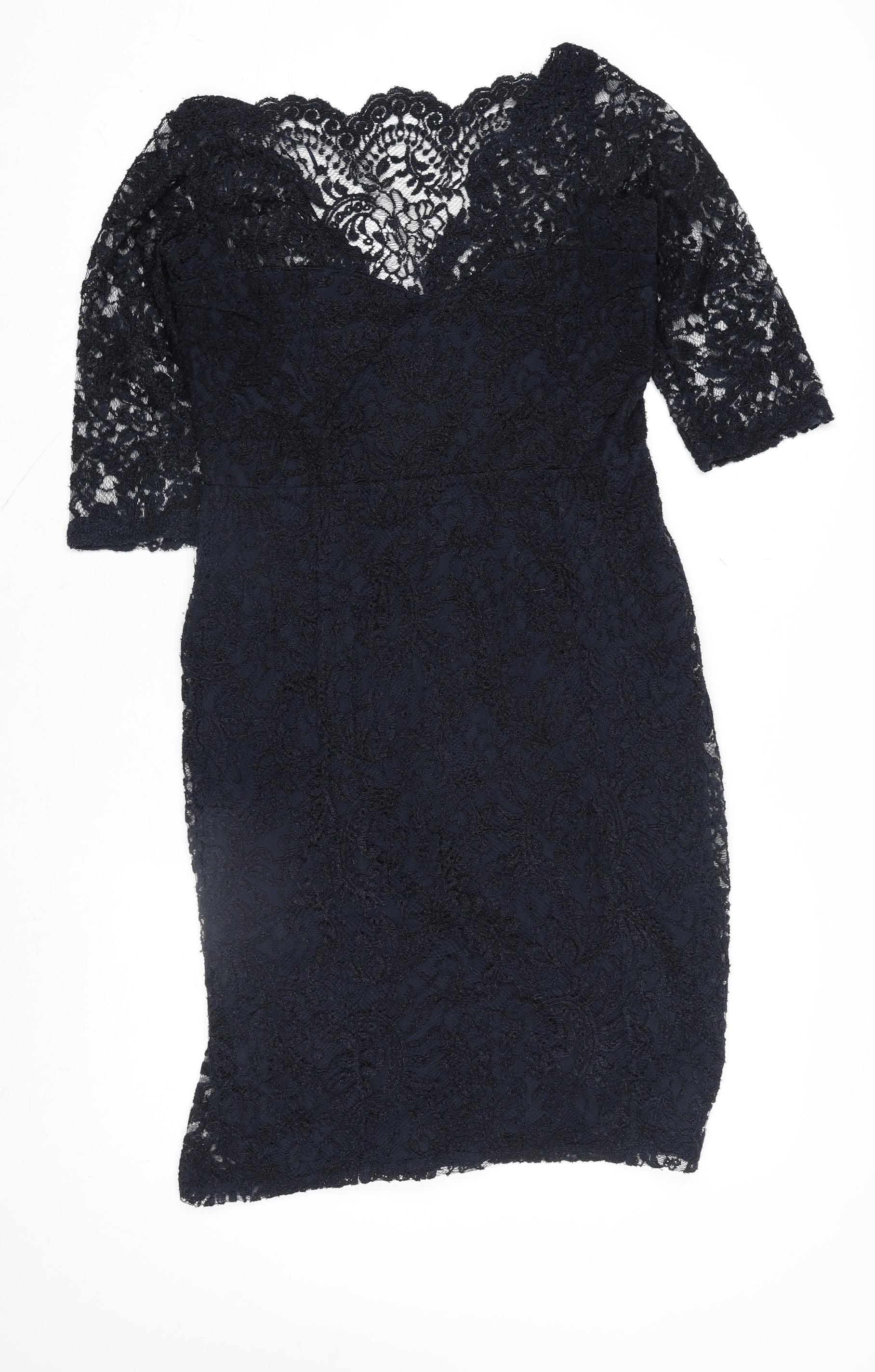 Next Women Black Lace Bodycon Knee Length Dress Size 14