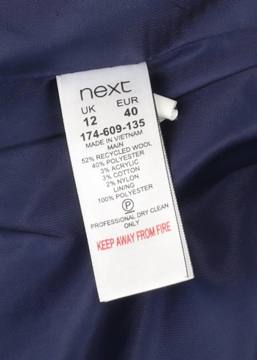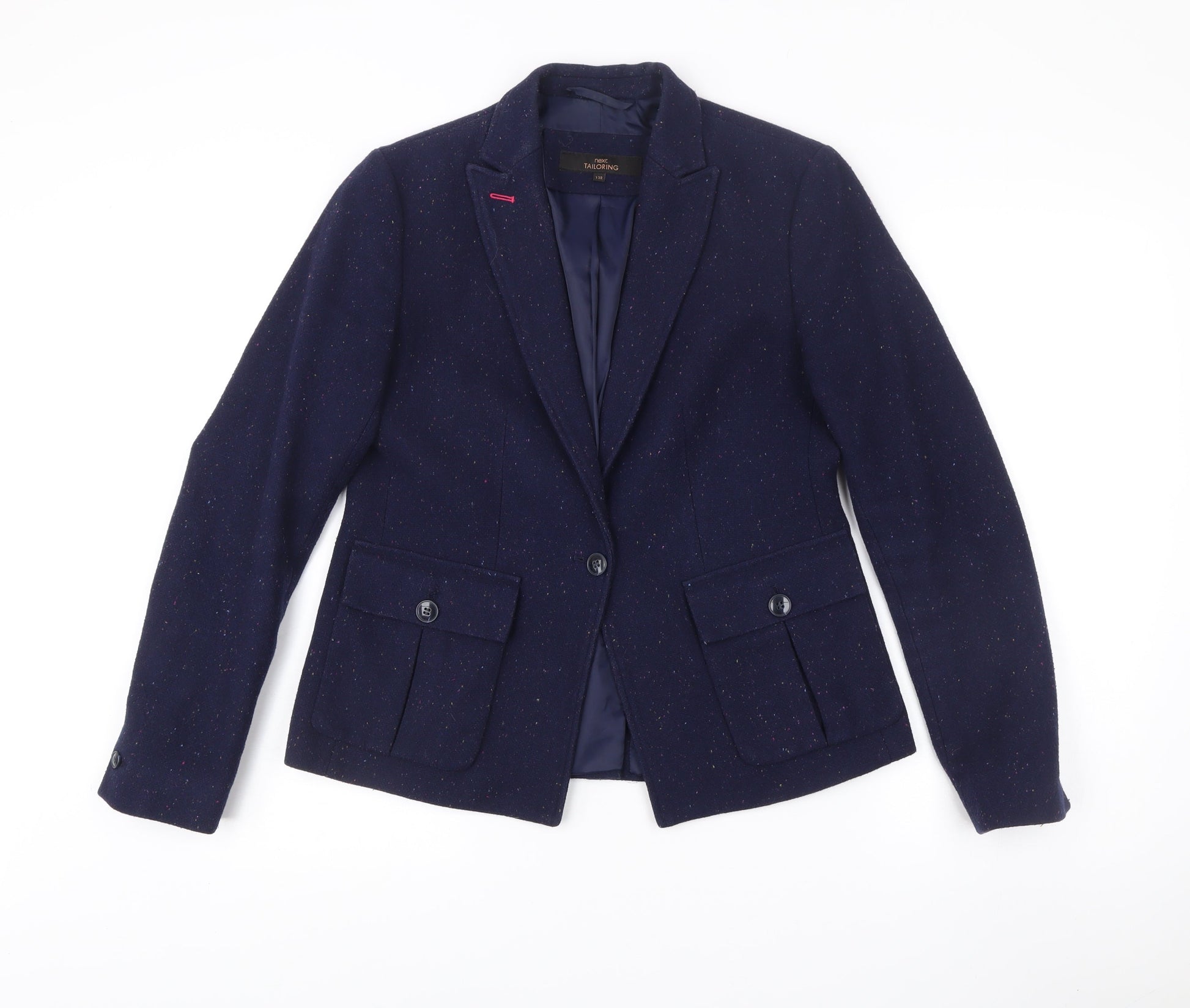 Next Women Blue Wool Blend Tweed Blazer Size 12 Regular Fit