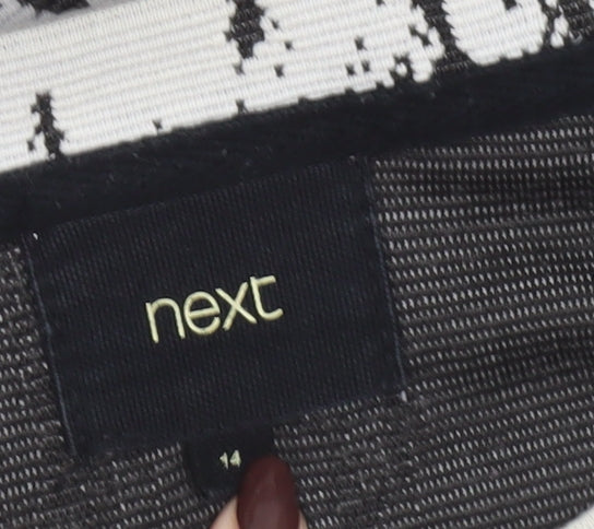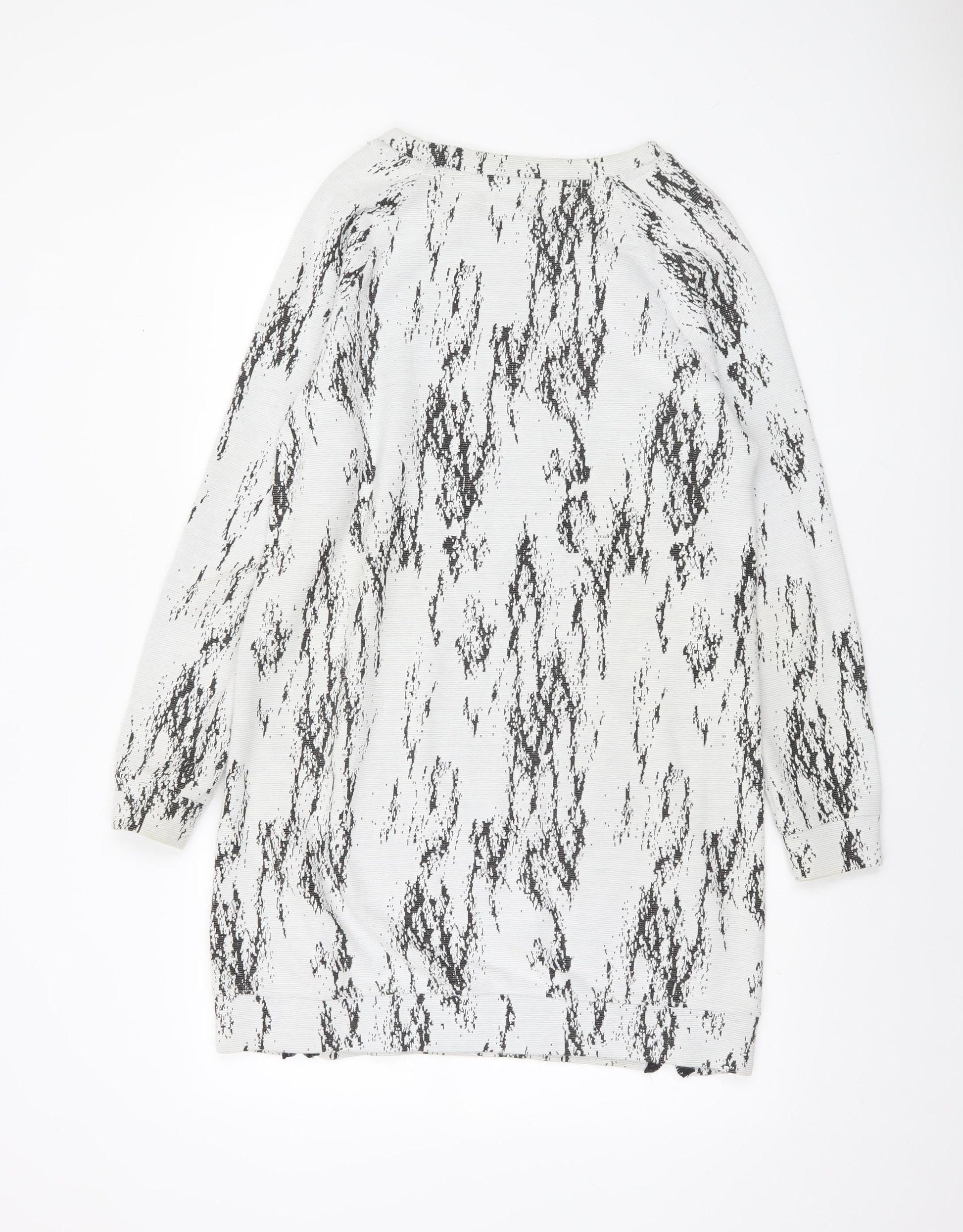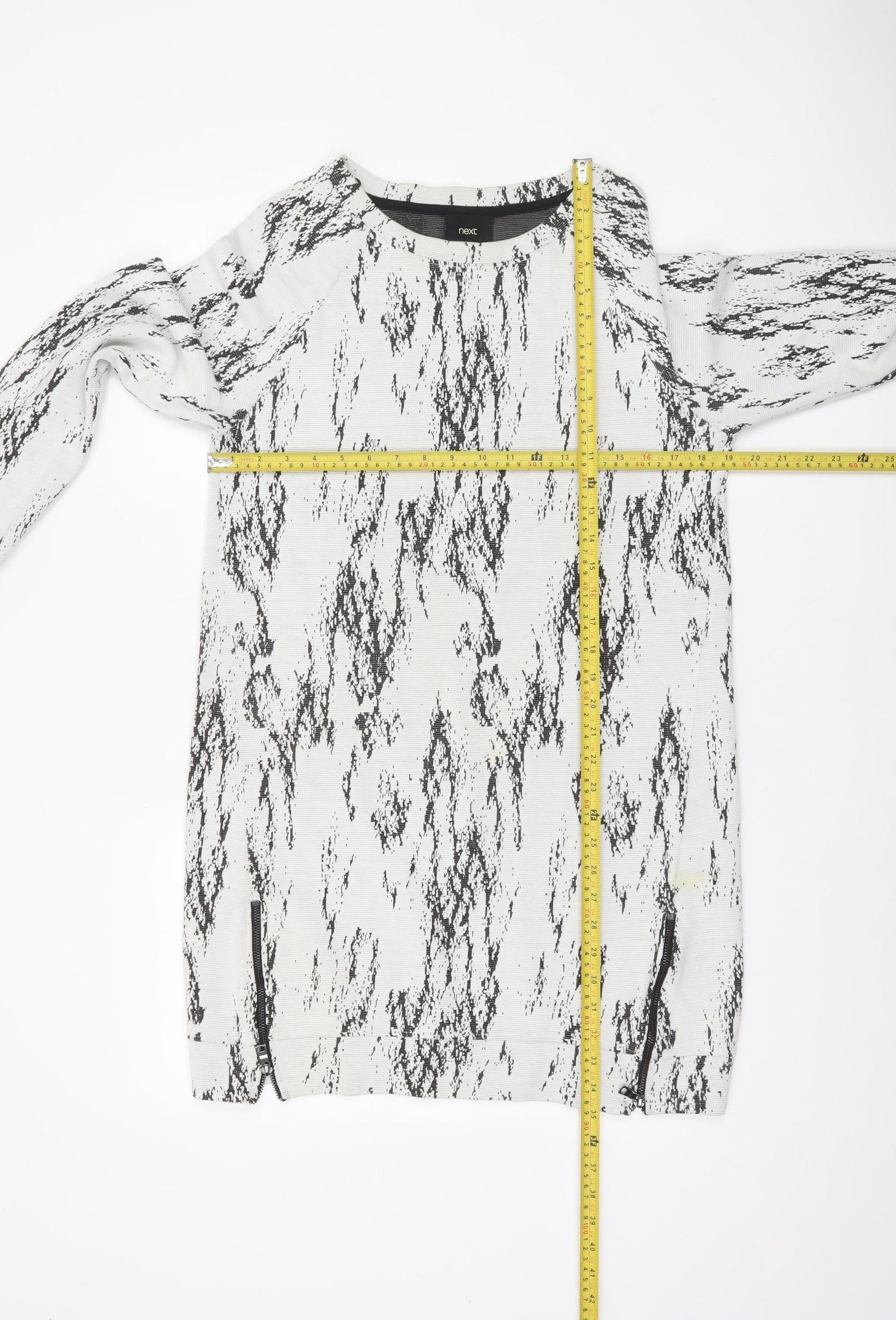 Next Women Grey Abstract Knit Shift Dress Size 14 Long Sleeve Zip Detail