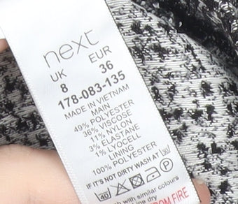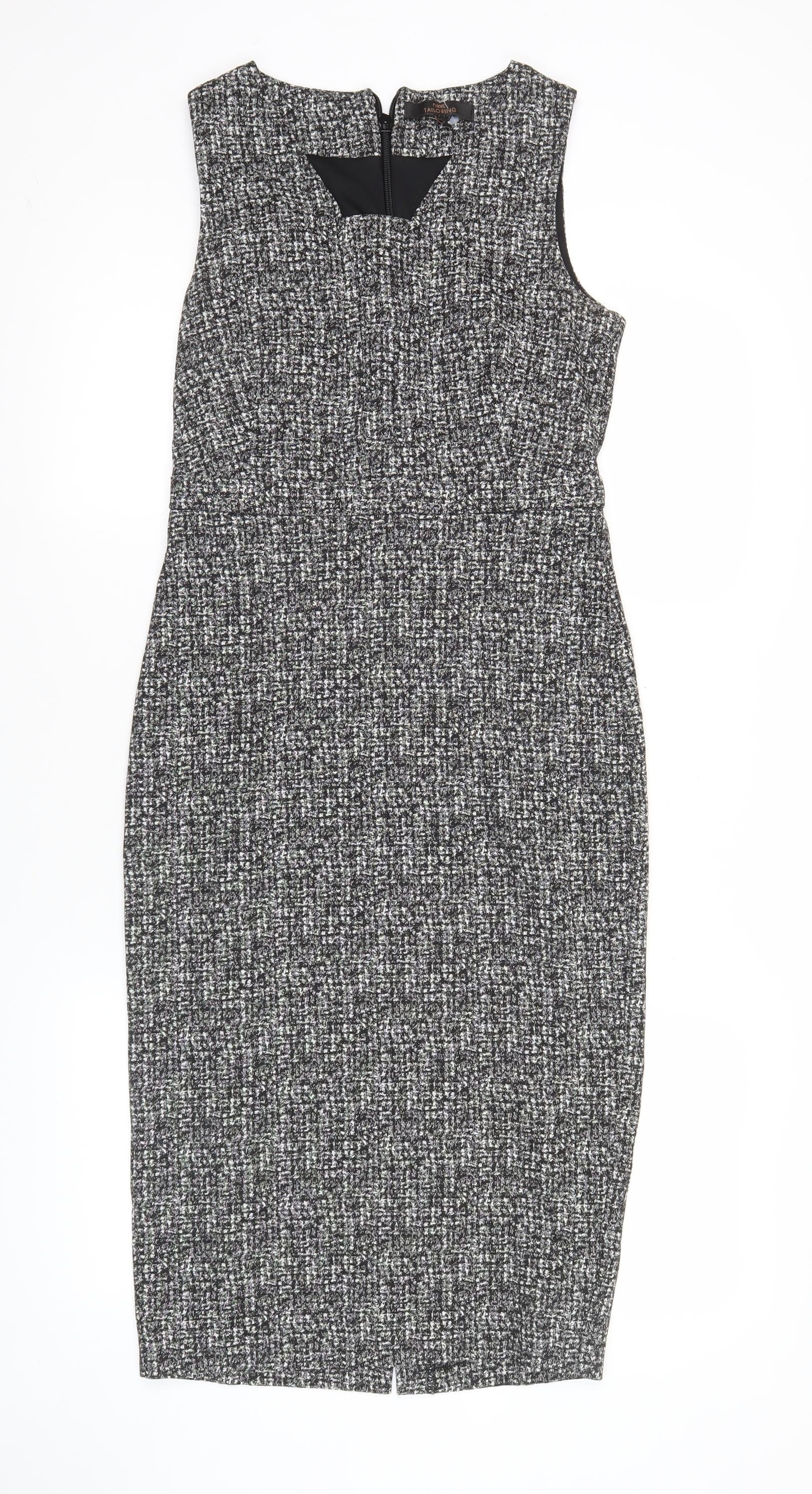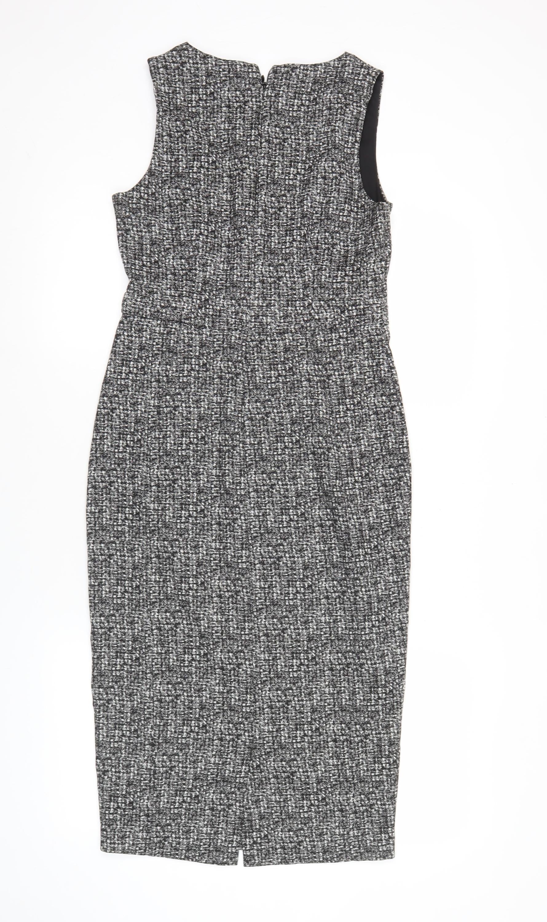 Next Women Grey Black Check Sheath Dress Size 8 Sleeveless Workwear