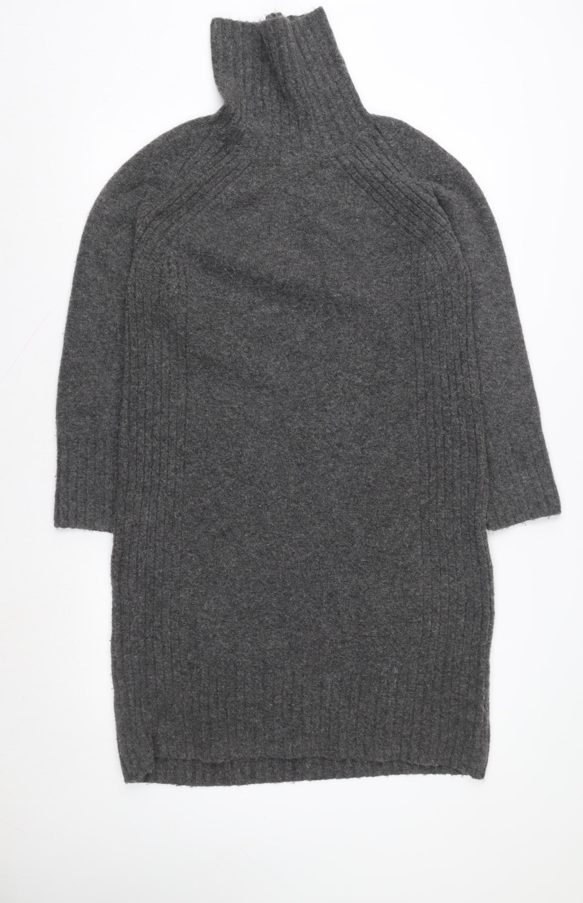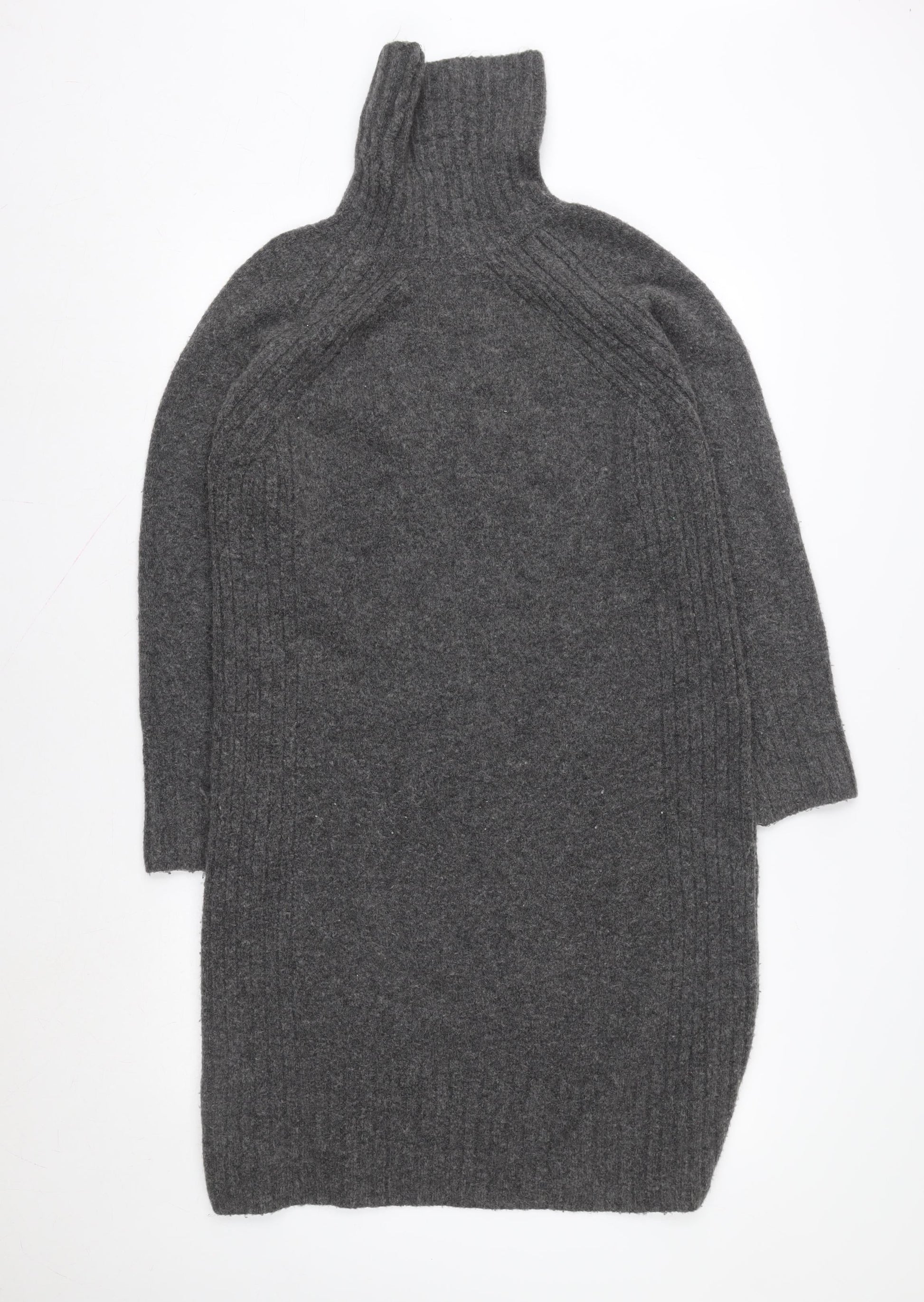 Next Women Grey Jumper Dress Size 14 High Neck Knit Winterwear