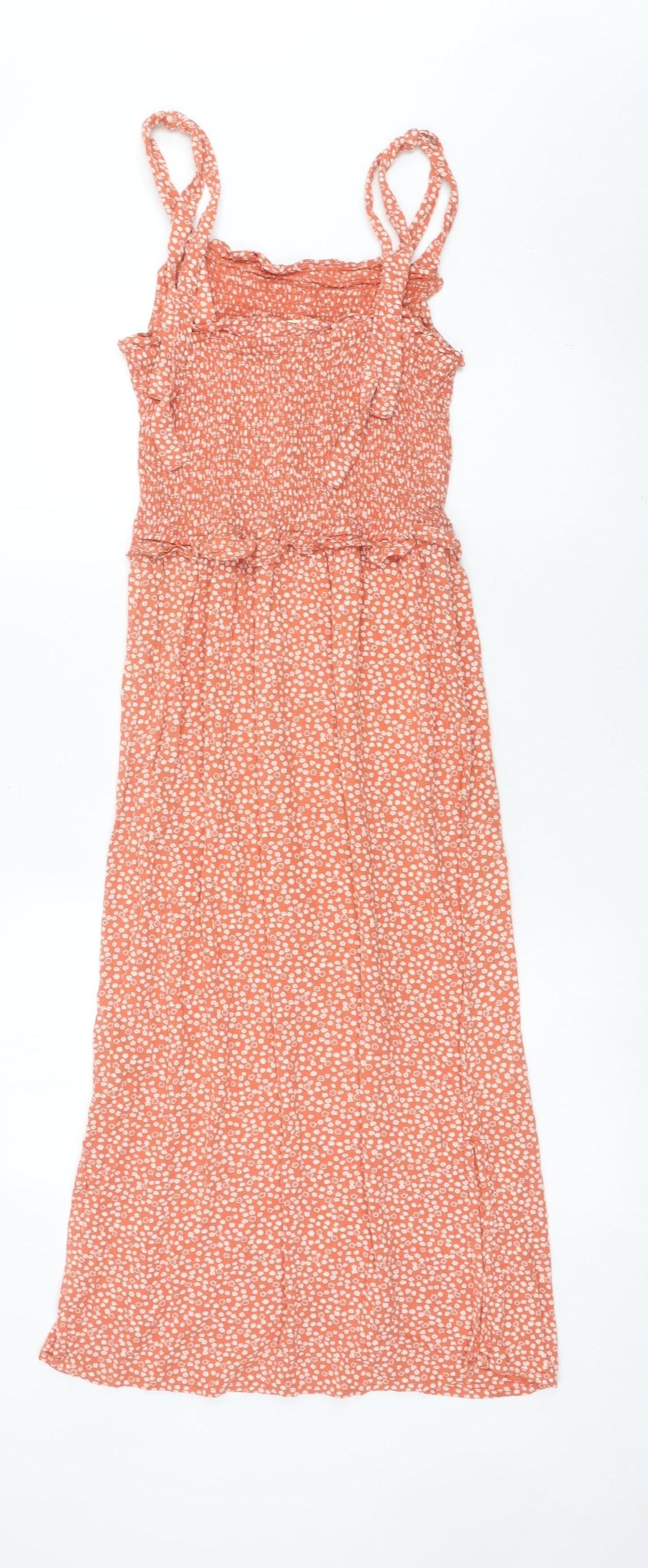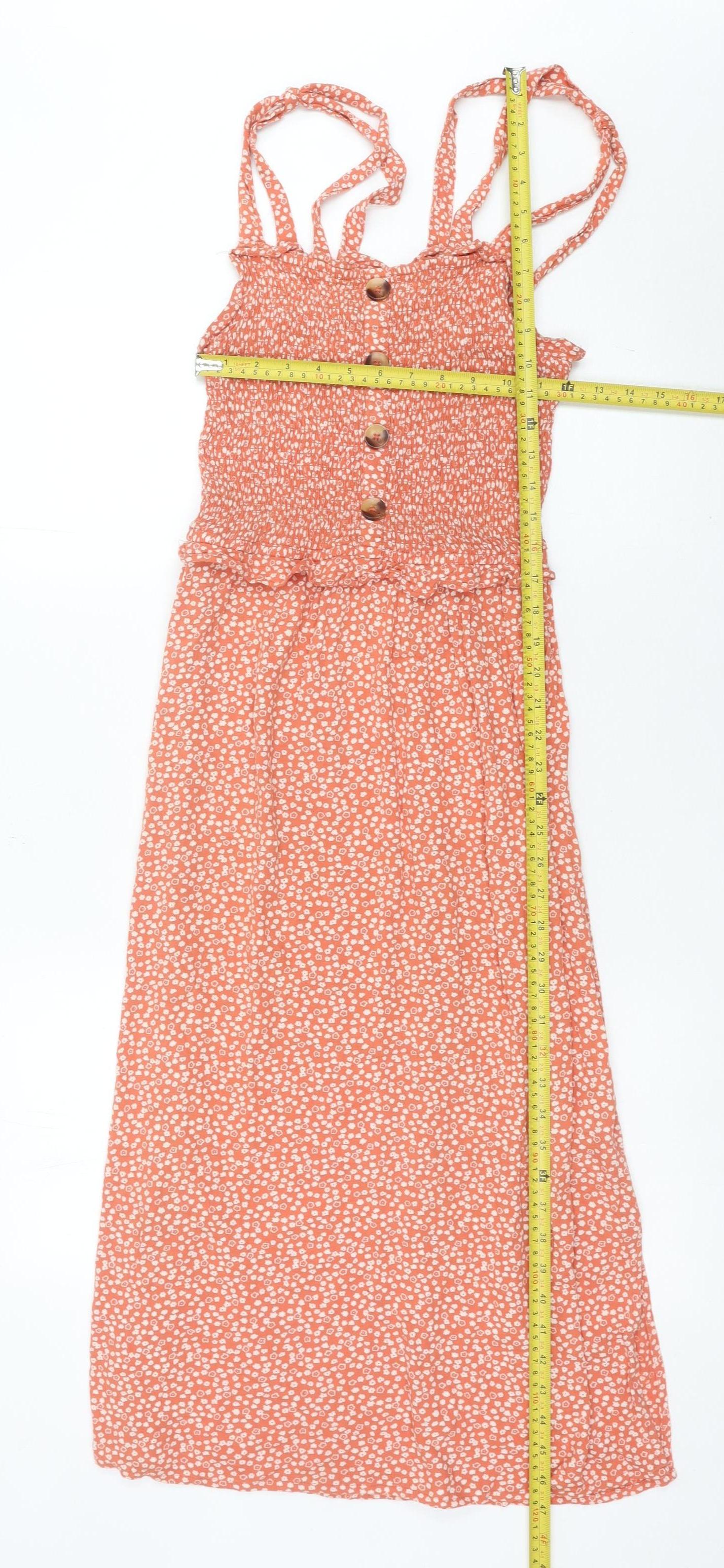 Next Women Orange Floral Midi Sundress Size 8 Strappy Summer