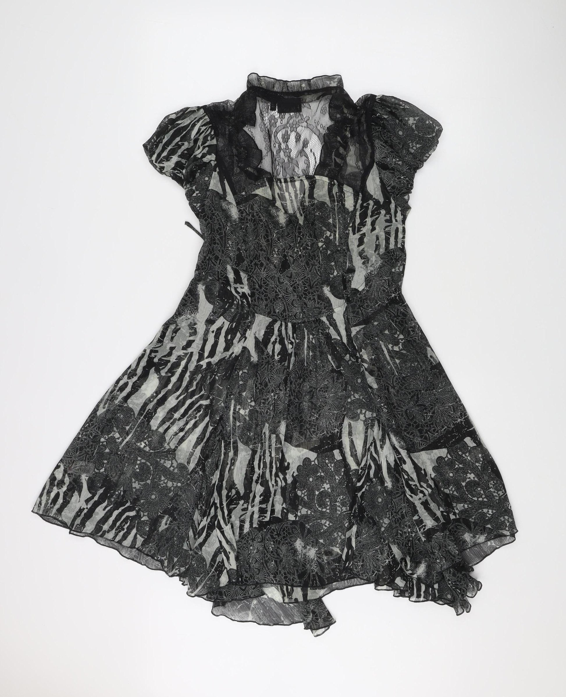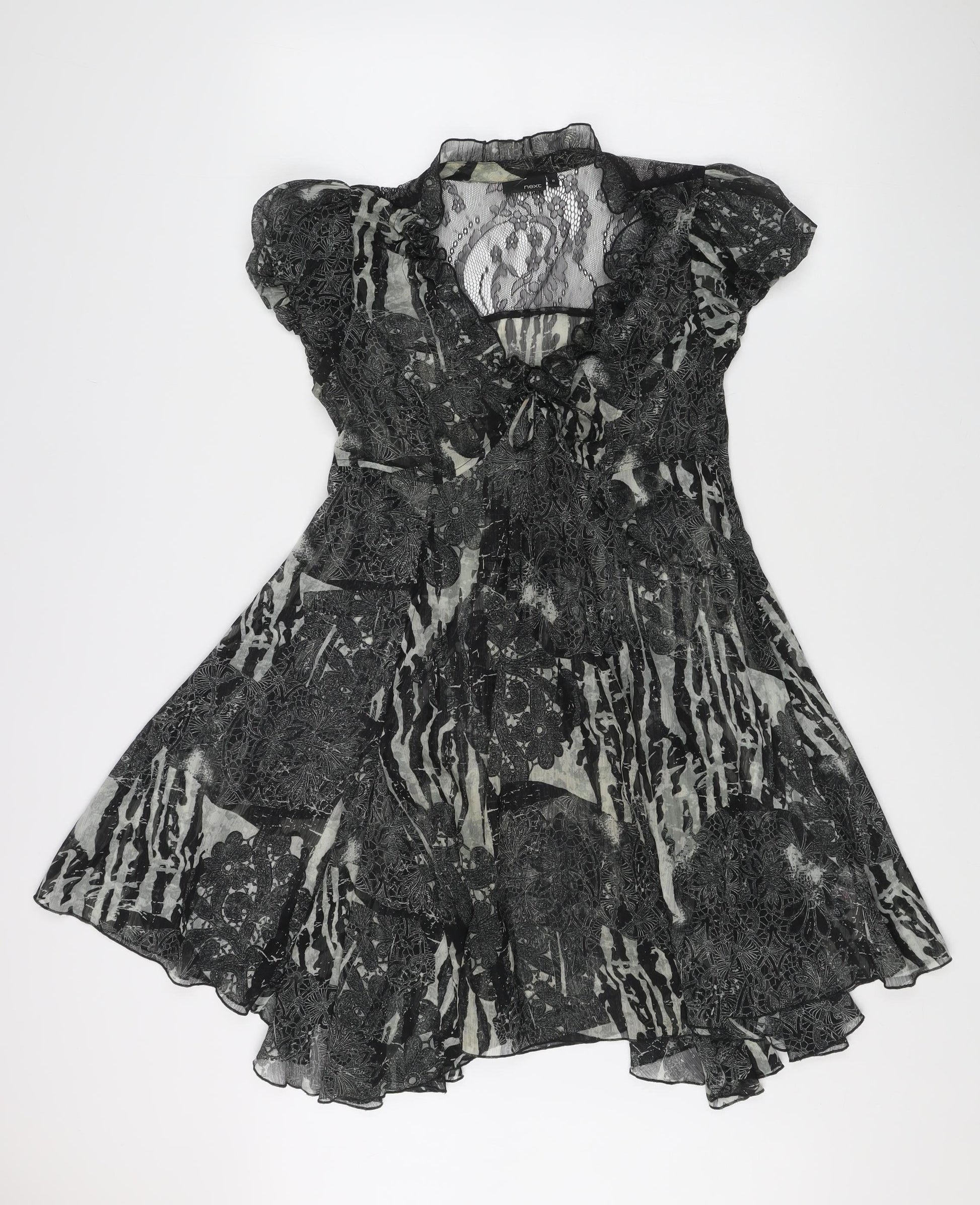 Next Women’s Black Floral Hi-Low Fit & Flare Dress UK 10 Puff Sleeve