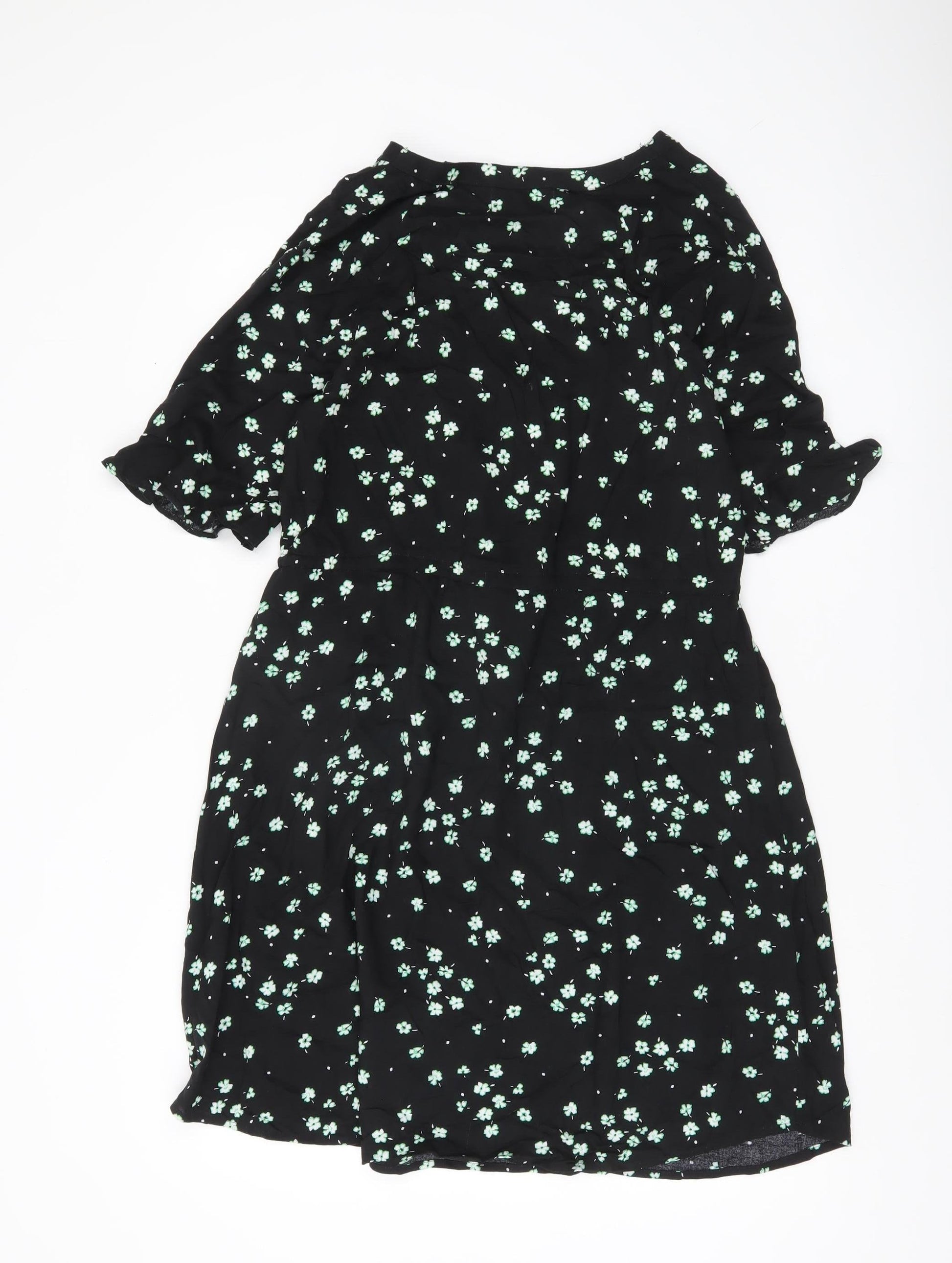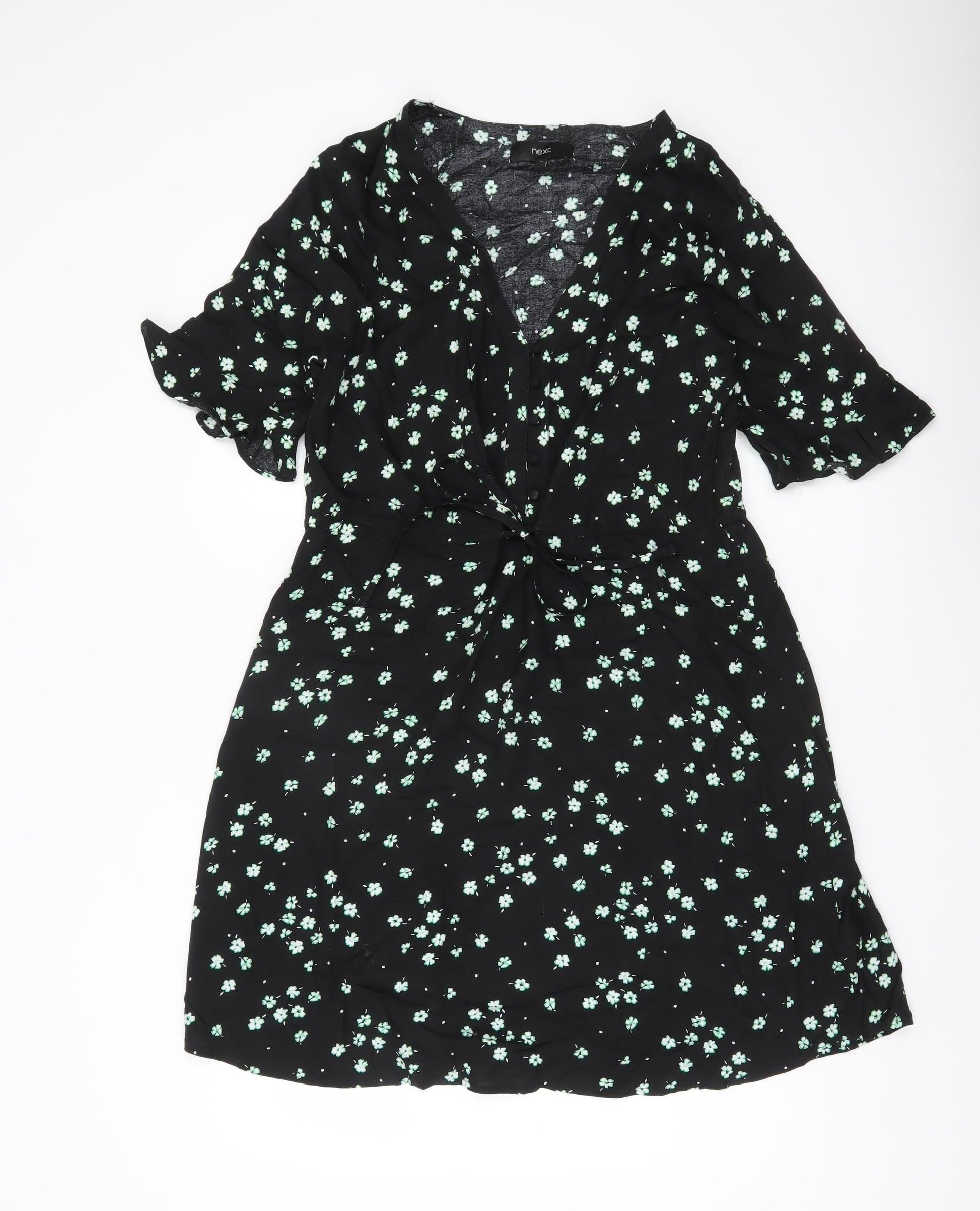 Next Women’s Black Floral Wrap Dress Size 8 Knee Length Viscose