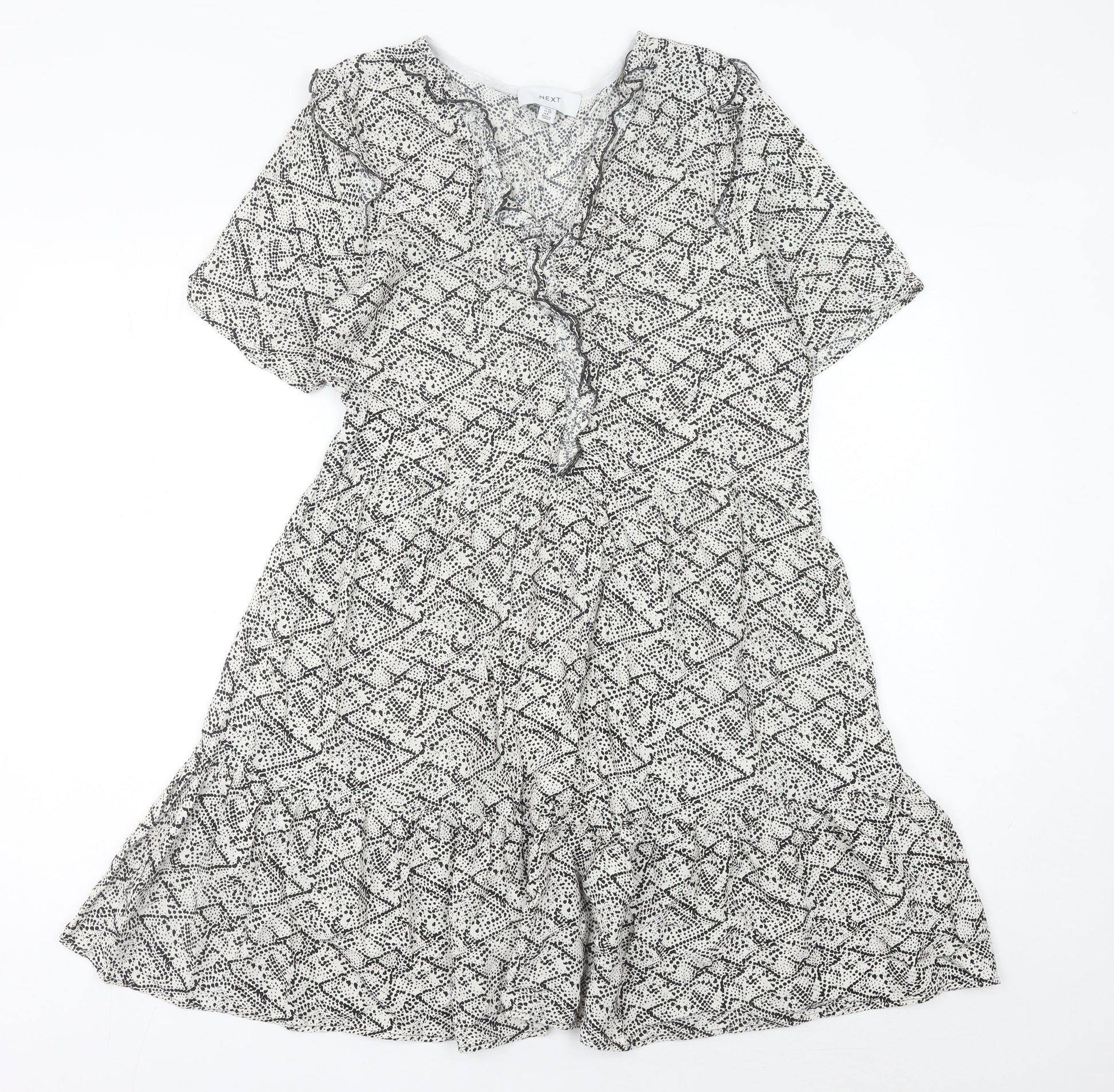 Next Women’s Black Geometric A-Line Ruffle Dress Size 10