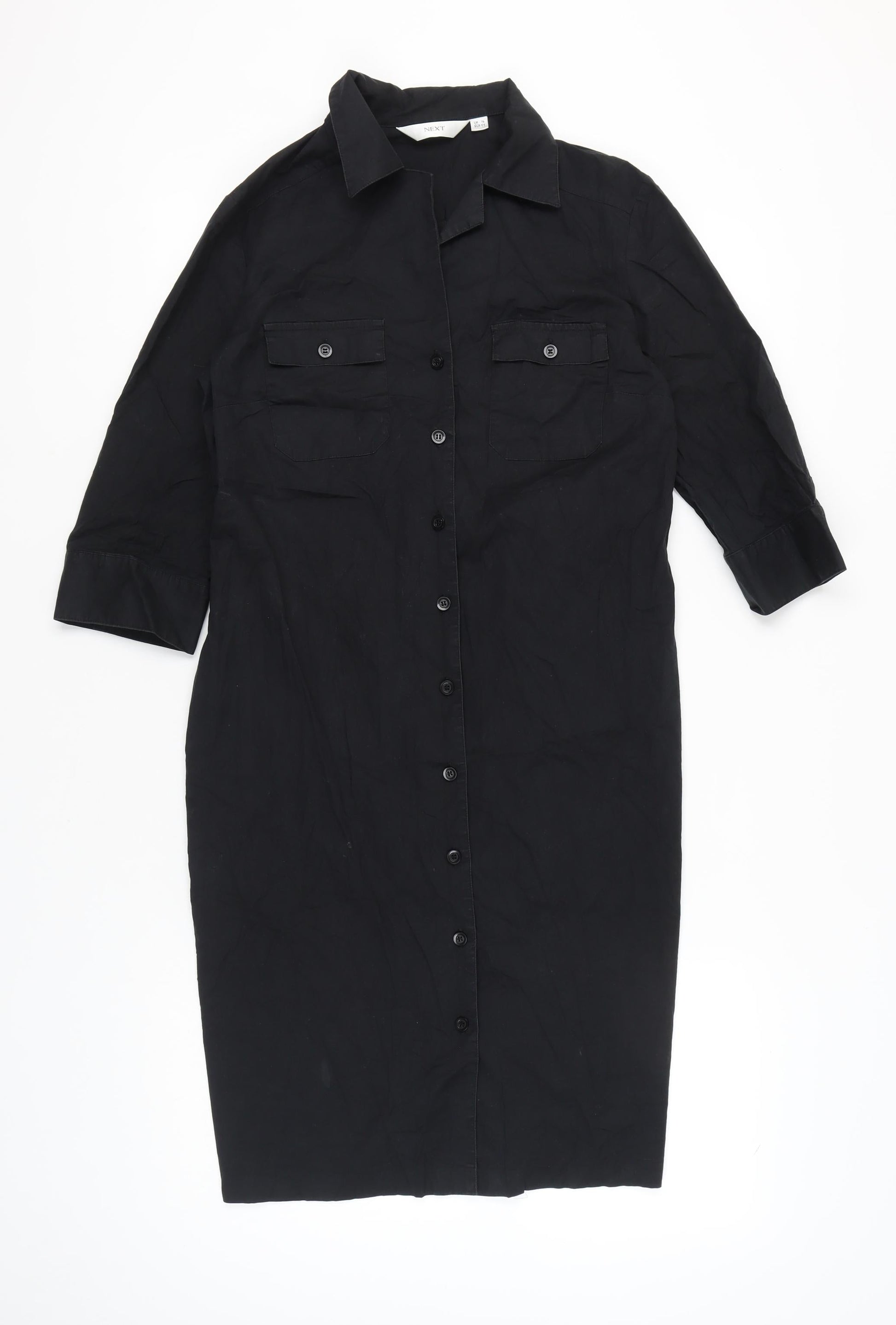 Next Women’s Black Shirt Dress UK 16 Knee Length Cotton
