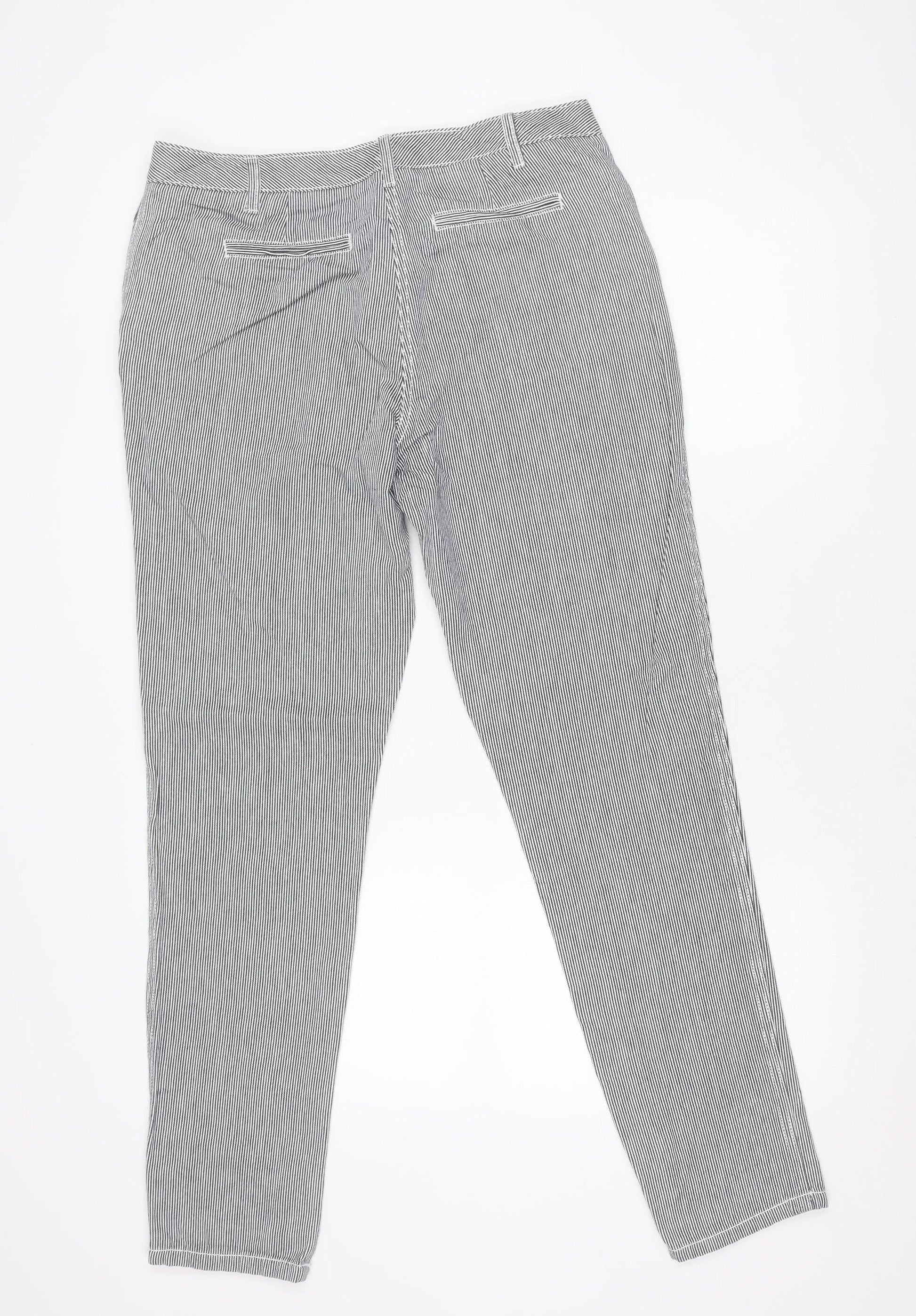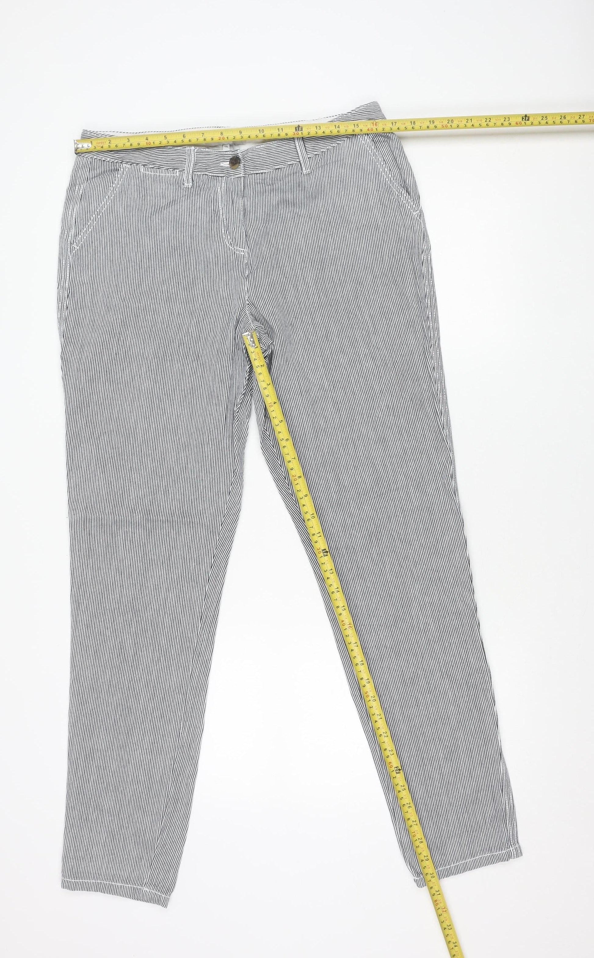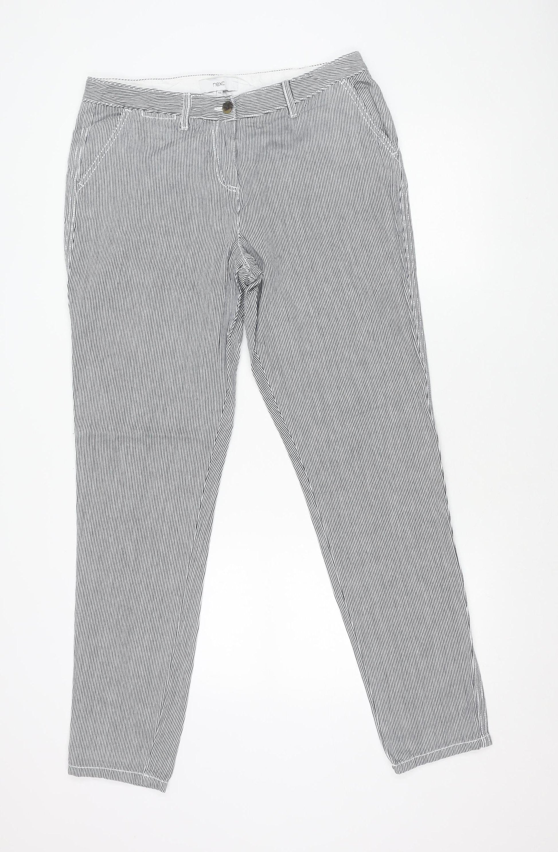 Next Women’s Black Striped Chino Trousers Size 12L Tall Cotton