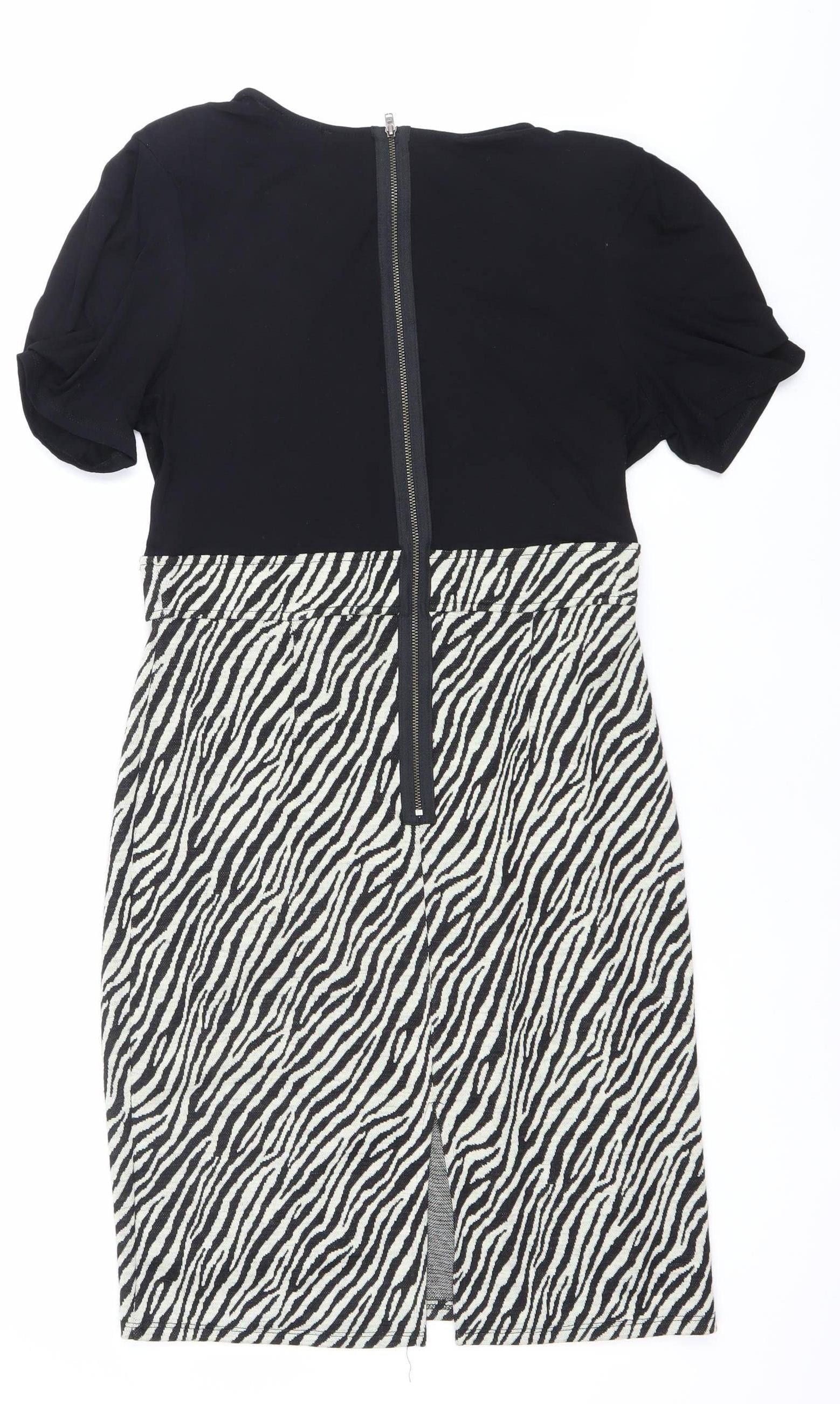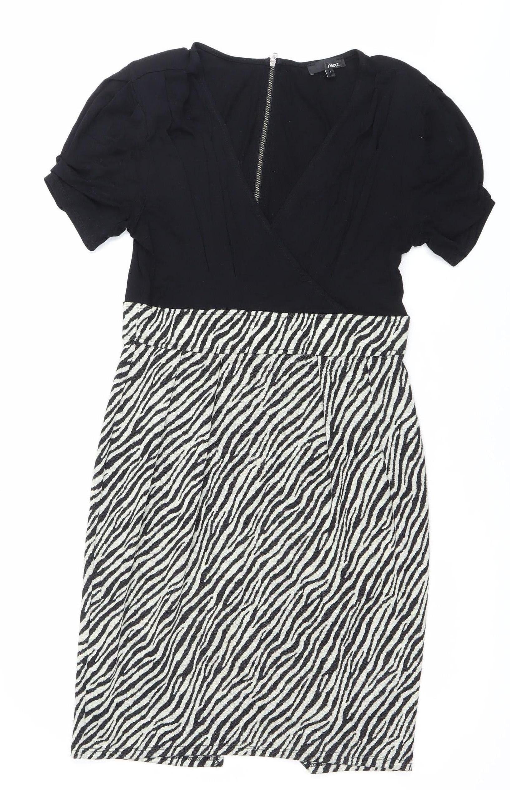 Next Women’s Black White Animal Print V-Neck Sheath Dress Size 12