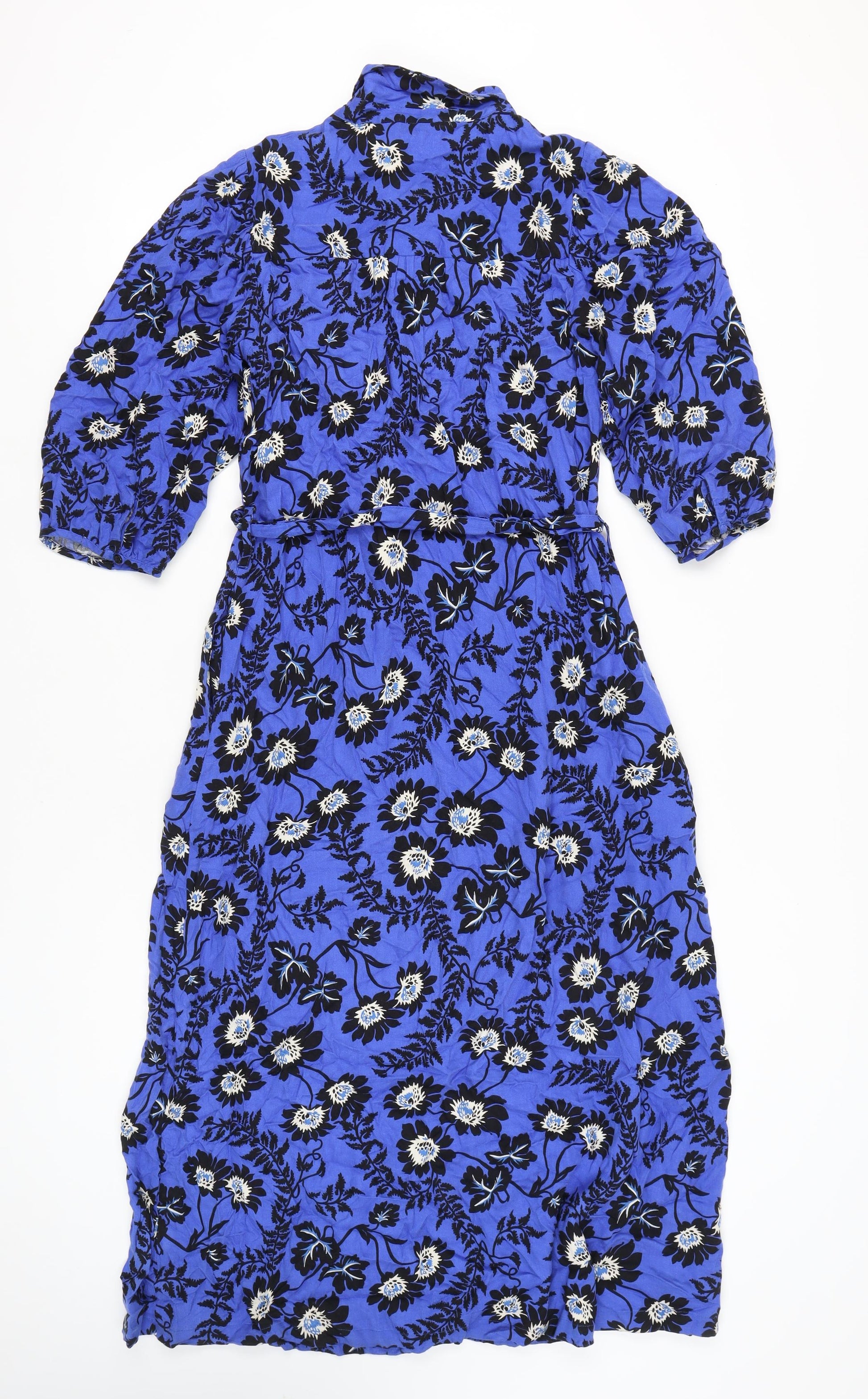 Next Women’s Blue Floral Midi Shirt Dress Size 12 High Neck