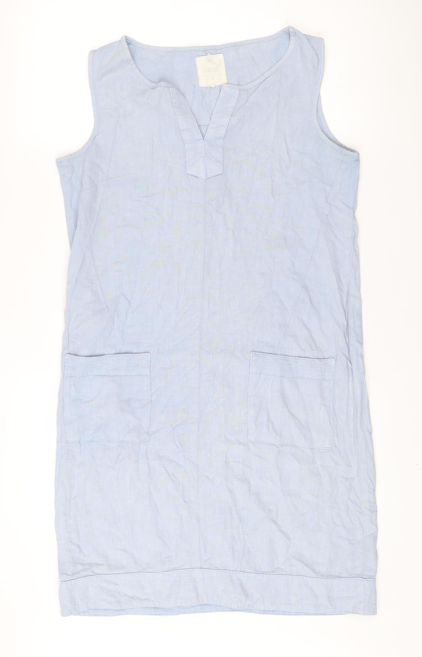 Next Women’s Blue Linen Viscose Shift Dress Size 8 Sleeveless