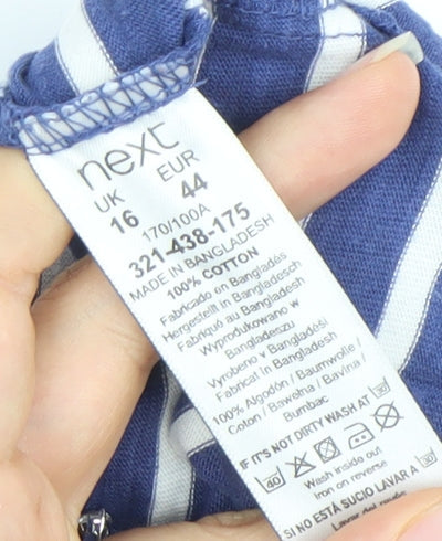 Next Women’s Blue Striped Cotton Knee Length Wrap Dress Size 16