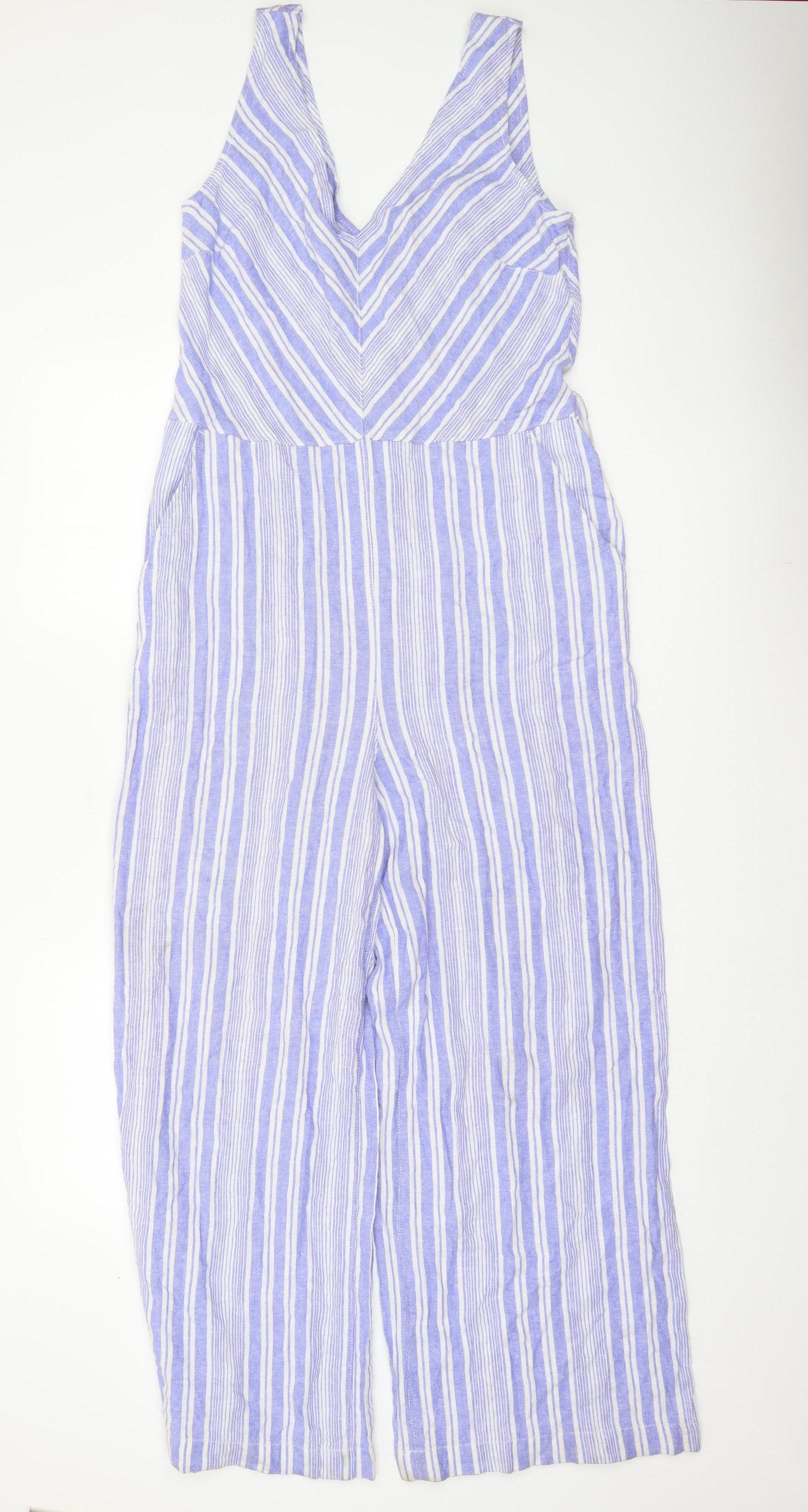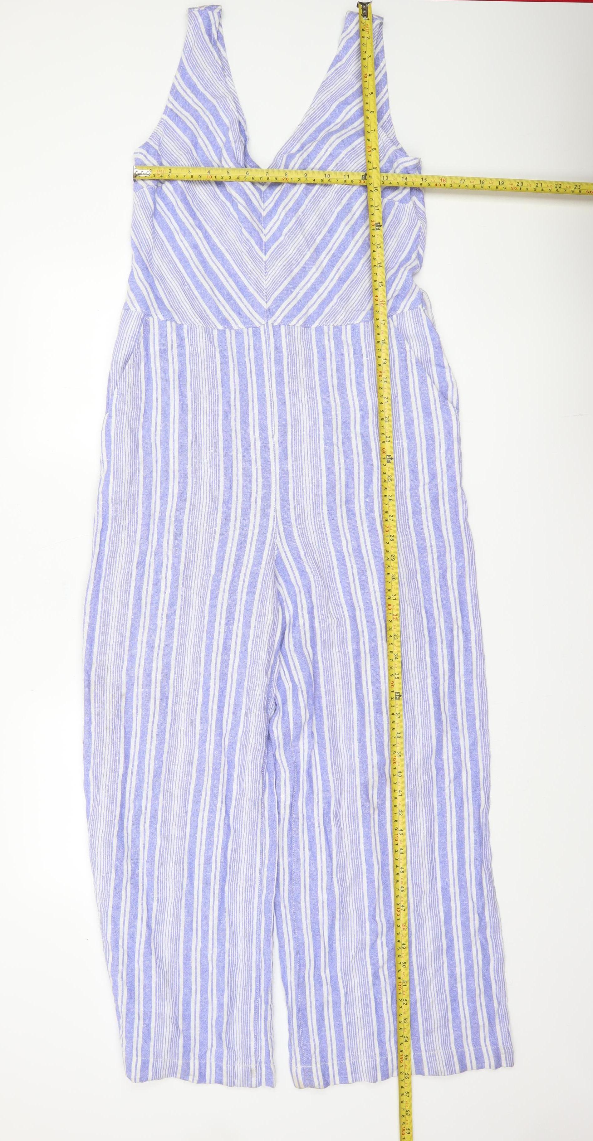 Next Women’s Blue Striped Linen Blend Sleeveless Jumpsuit Size 10