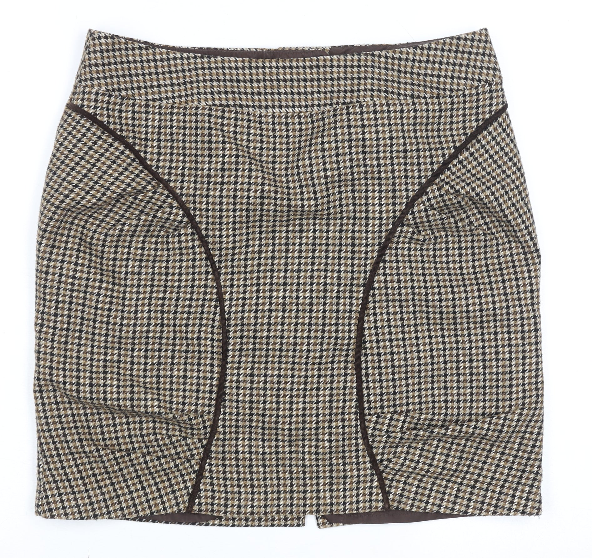 Next Women’s Brown Wool Blend Houndstooth Pencil Skirt Size 12