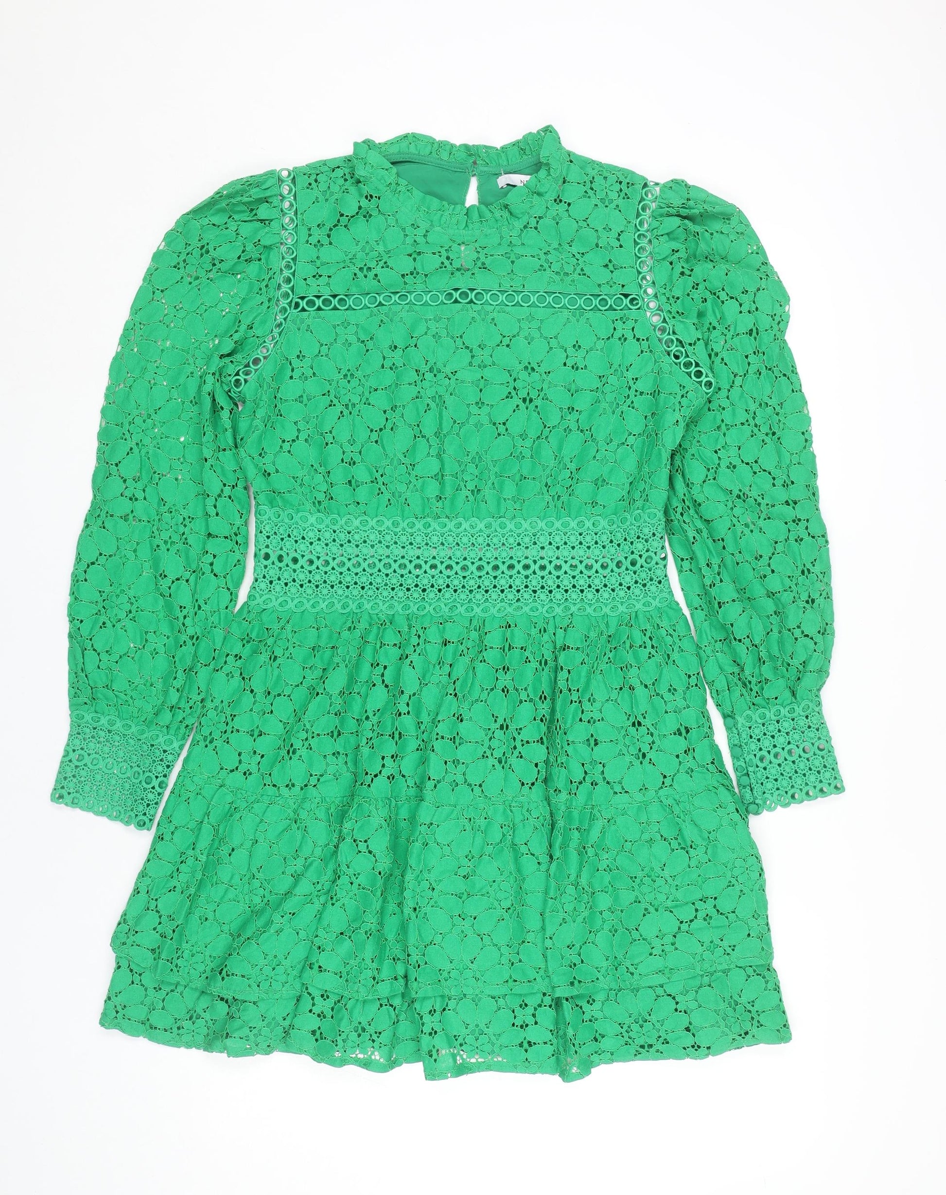 Next Women’s Green Lace A-Line Party Dress Size 10 Long Sleeve