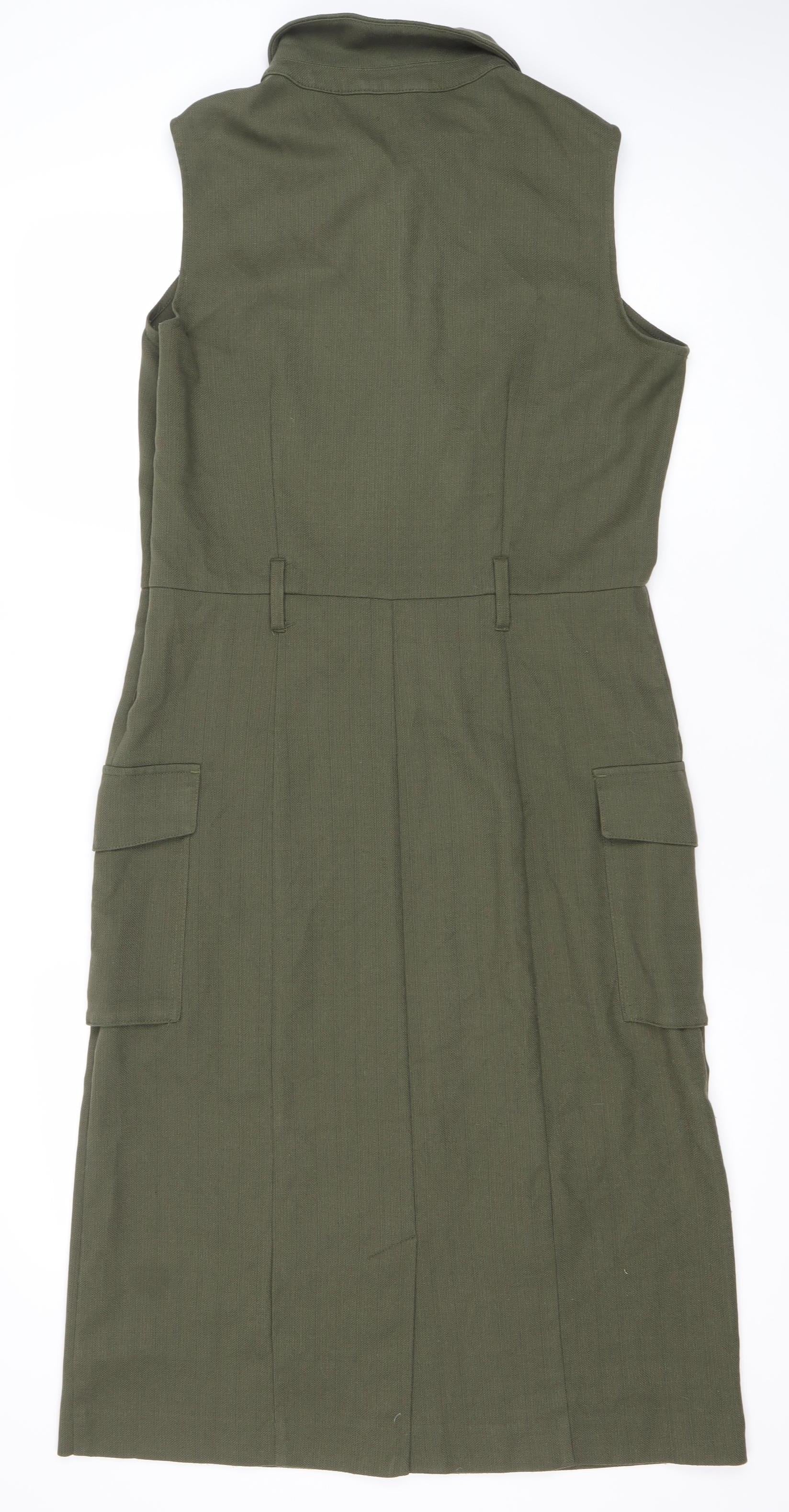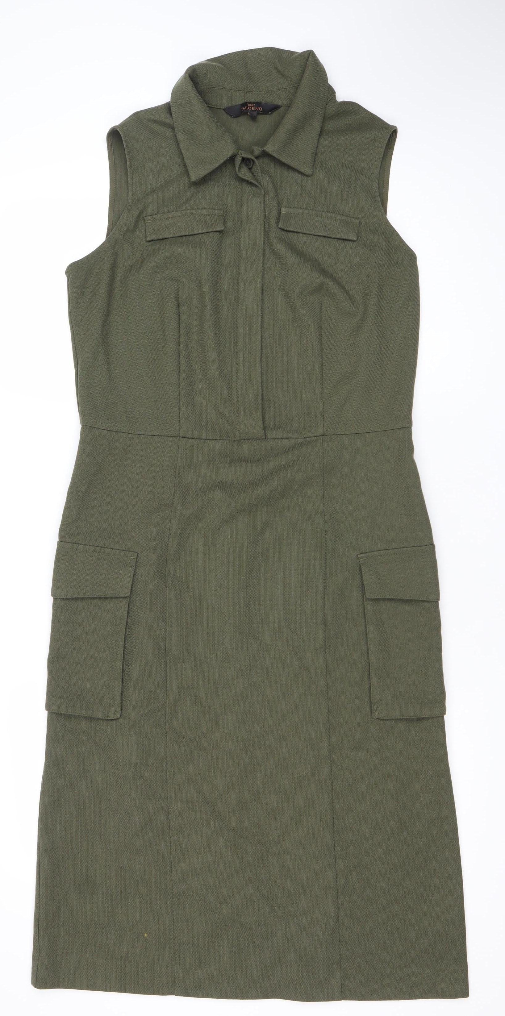 Next Women’s Green Shift Dress Size 12 Collared Sleeveless Workwear