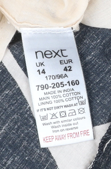 Next Women’s Ivory Black Geometric A-Line Cotton Dress Size 14