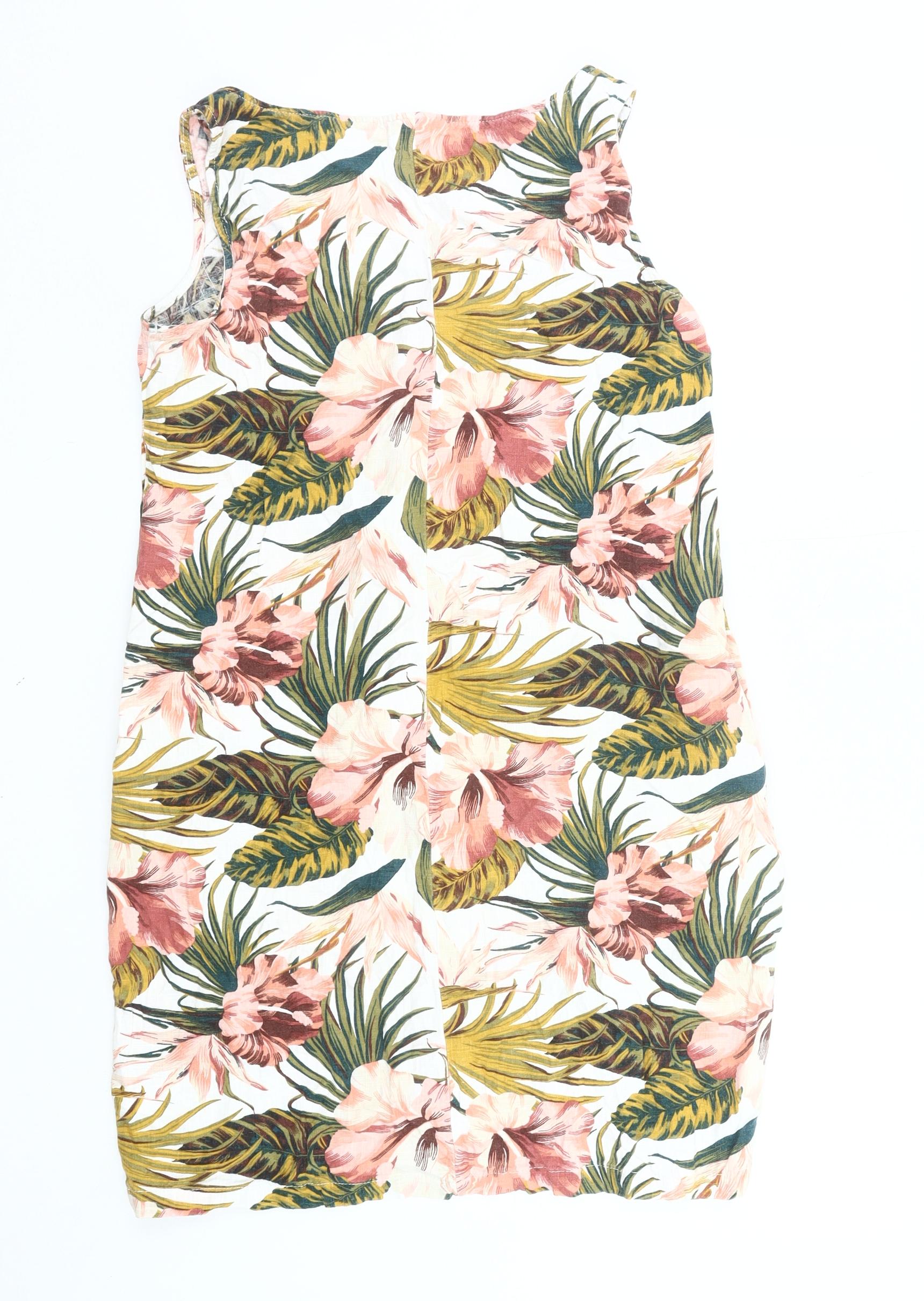 Next Women’s Multicoloured Floral Shift Dress Size 10 Linen Viscose