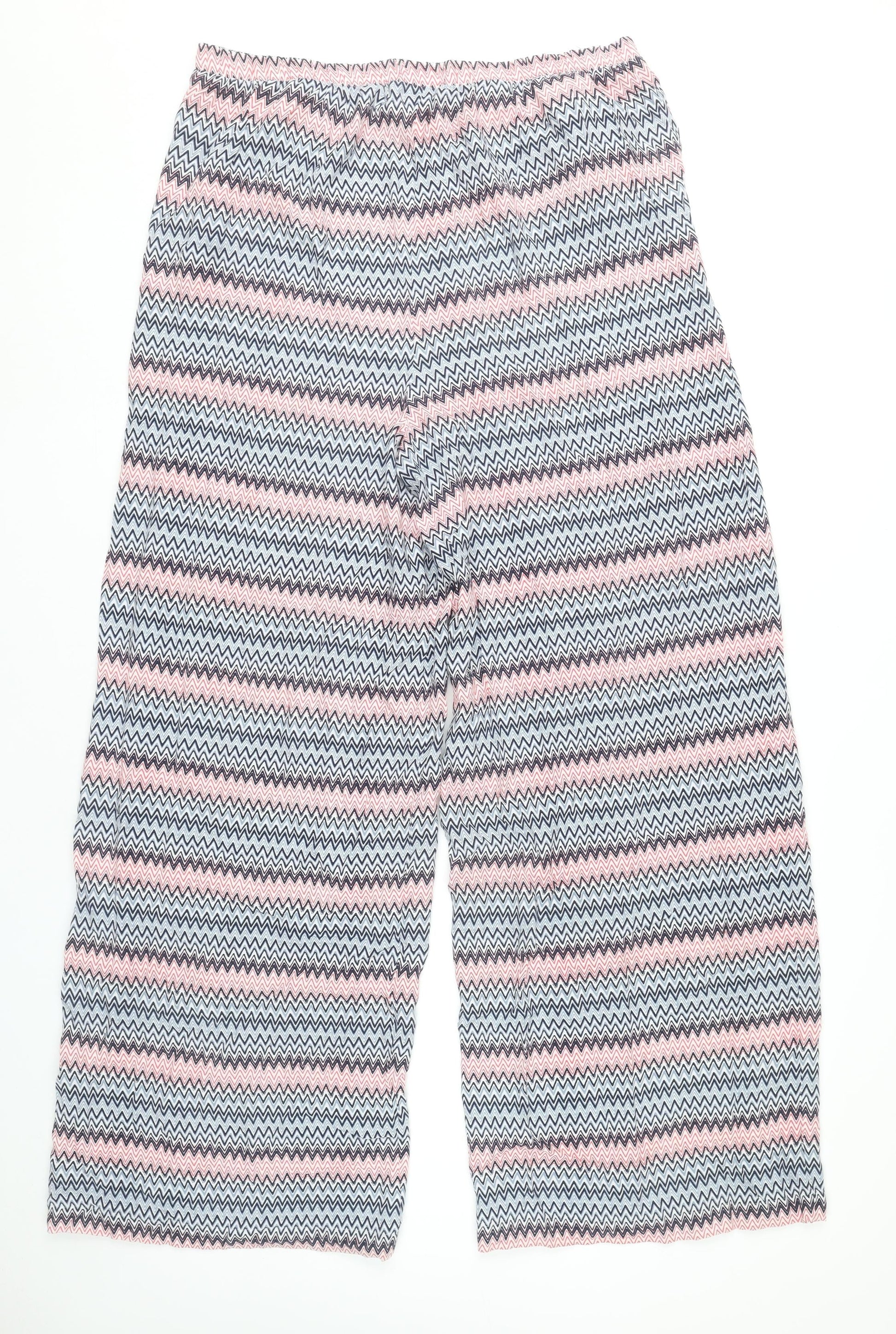 Next Women’s Multicoloured Striped Wide-Leg Viscose Trousers Size 16 Long