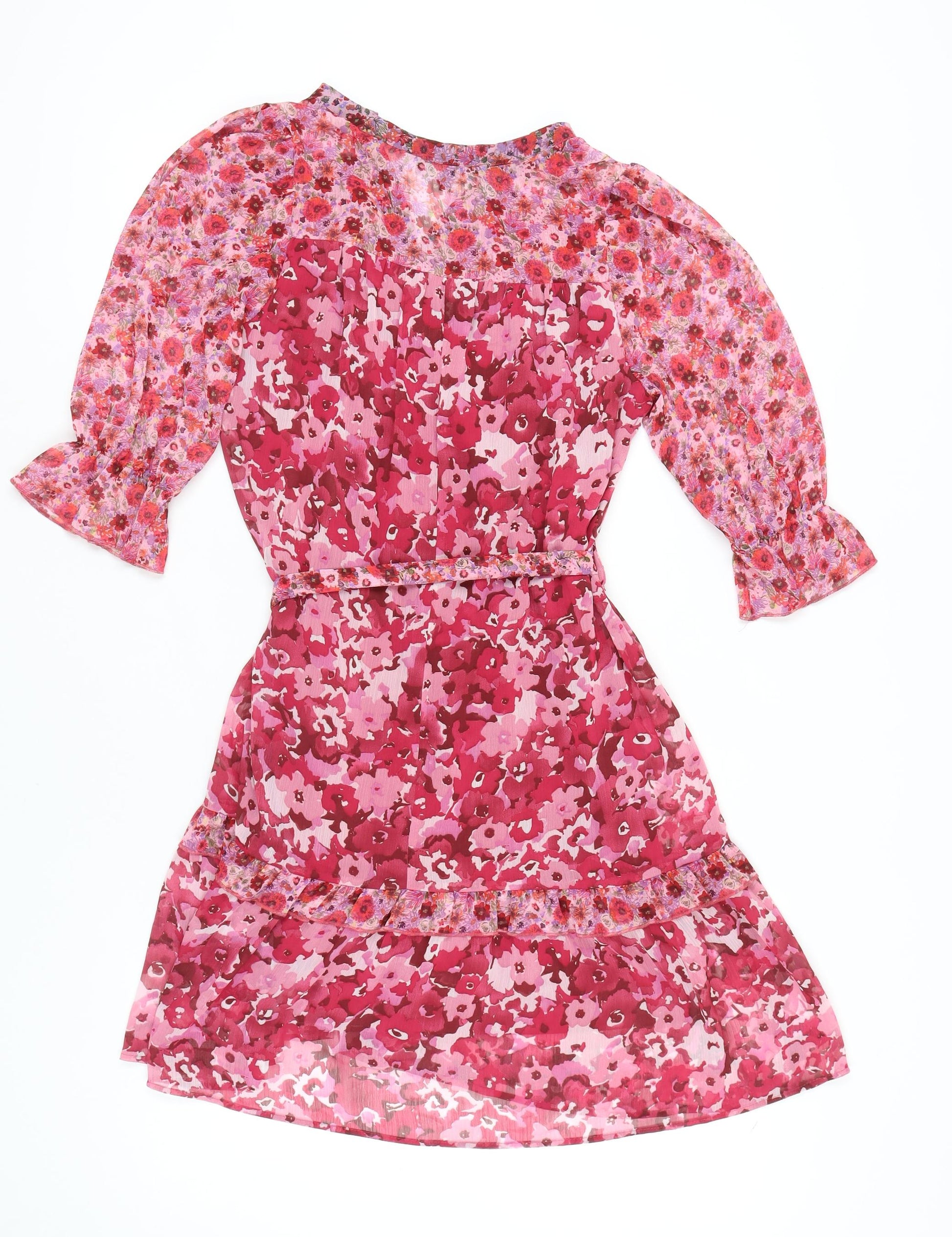 Next Women’s Pink Floral A-Line Chiffon Belted Dress UK 6