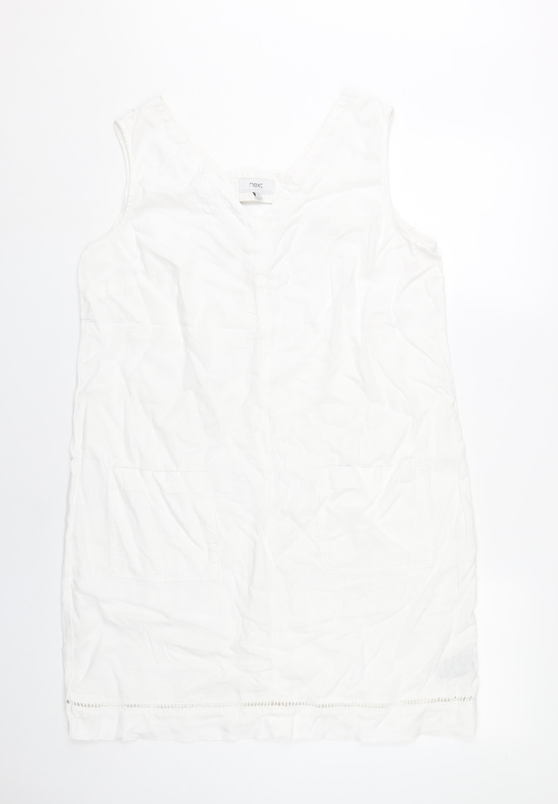 Next Women’s White Linen Viscose Knee Length Sleeveless Shift Dress Size 14