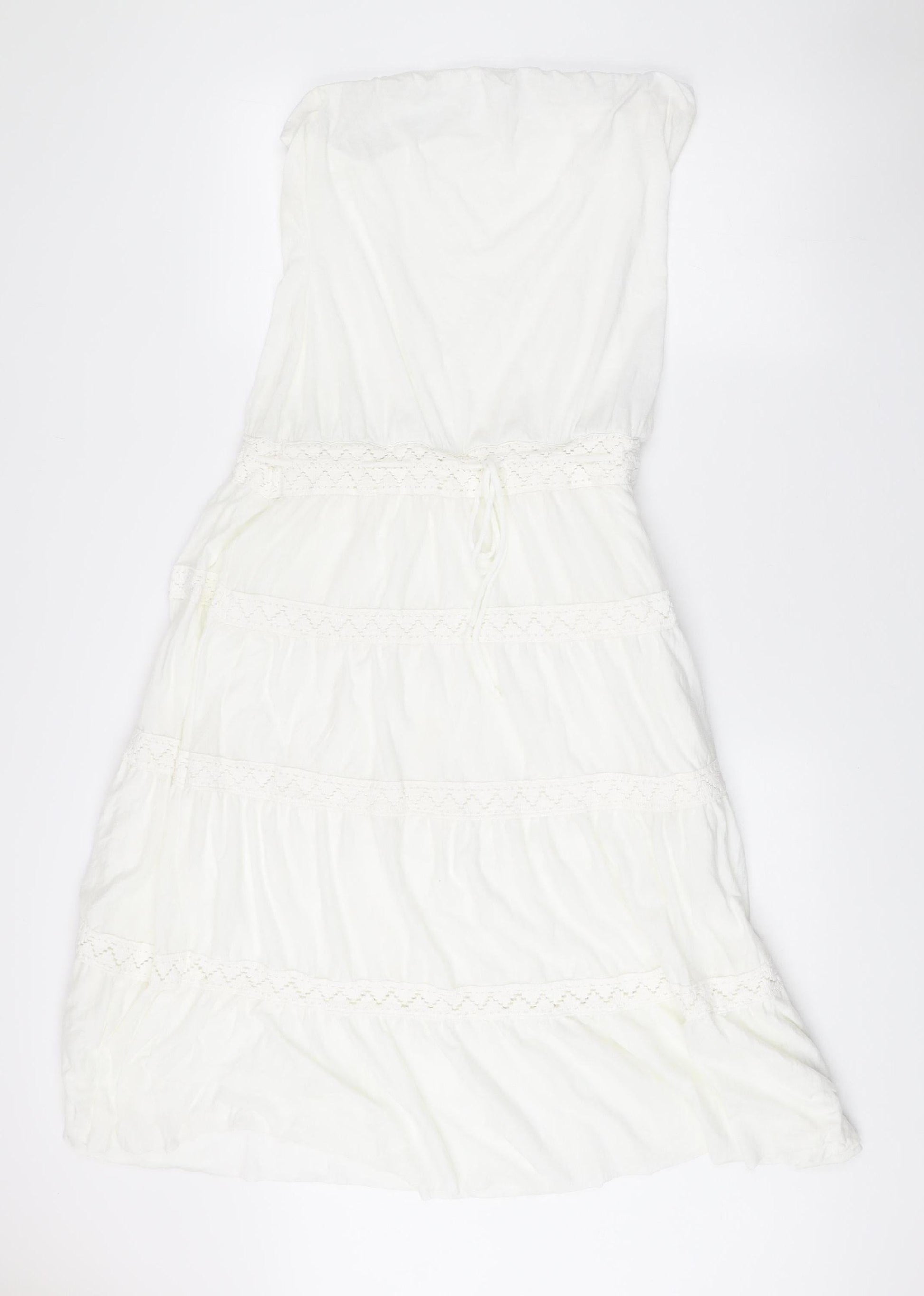Next Women’s White Strapless Knee Length Summer Dress Size 14
