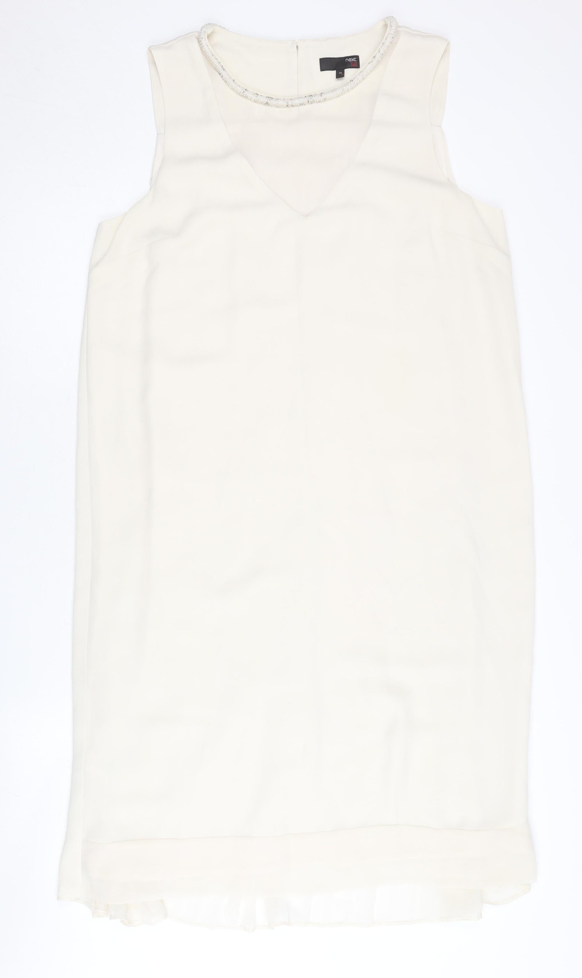 Next Women Tall Ivory Shift Beaded Dress Size 14 Sleeveless V-Neck